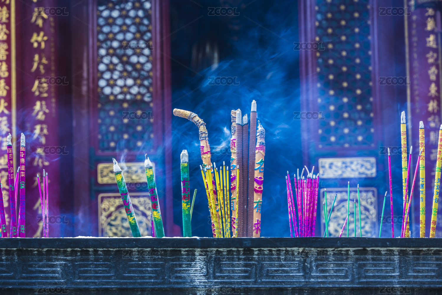 寺庙的烧香飘起缕缕白烟,佛家宗教信仰