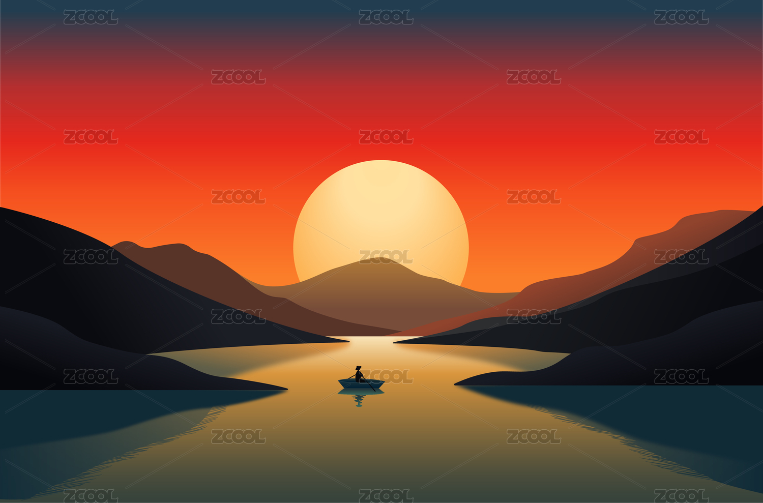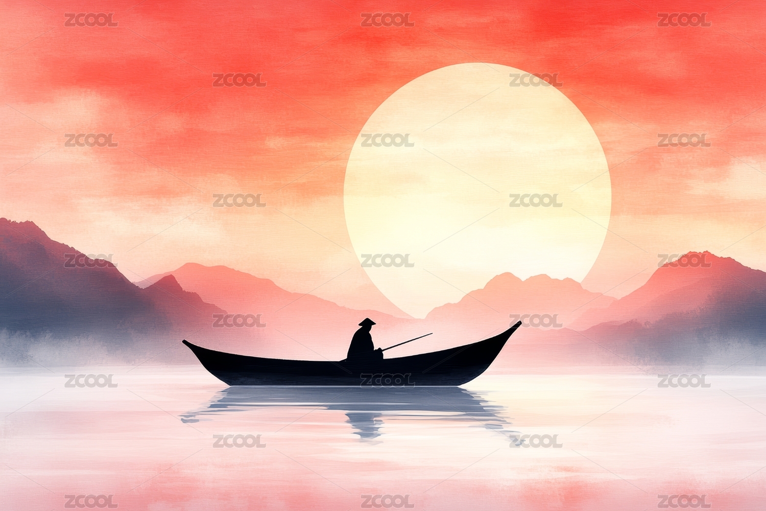 远山,宁静,泛舟,人物,景色,自然,平和,水墨,意境,风景