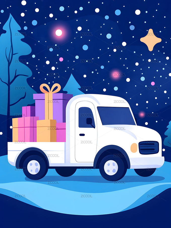 蓝色,粉色,星星,白色,雪花,黄色,树木,礼物,夜晚,星空