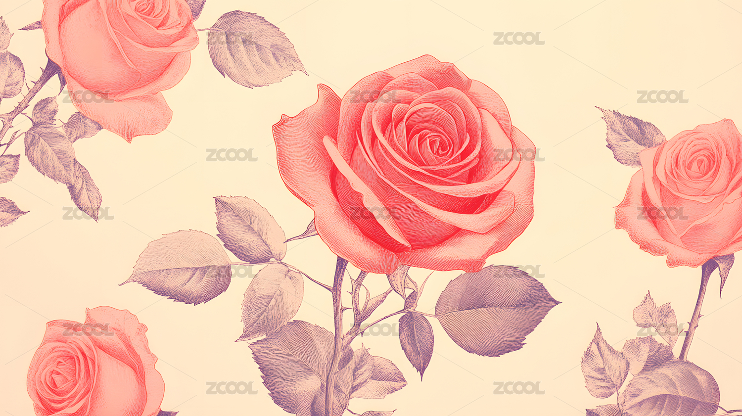 浅粉背景上的精致玫瑰素描