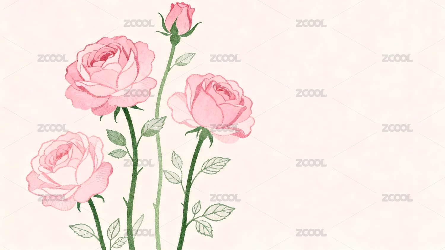 粉色玫瑰水彩画背景