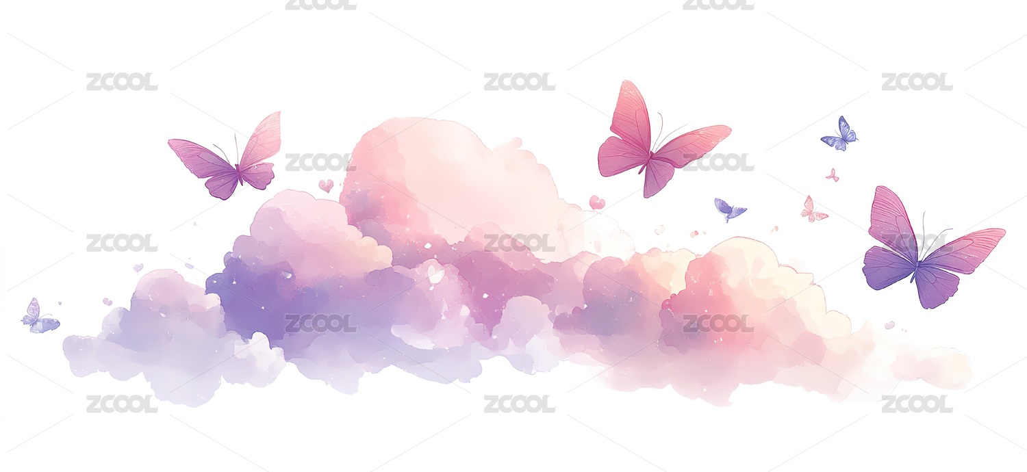 七彩祥云蝴蝶梦幻日落晚霞天空背景