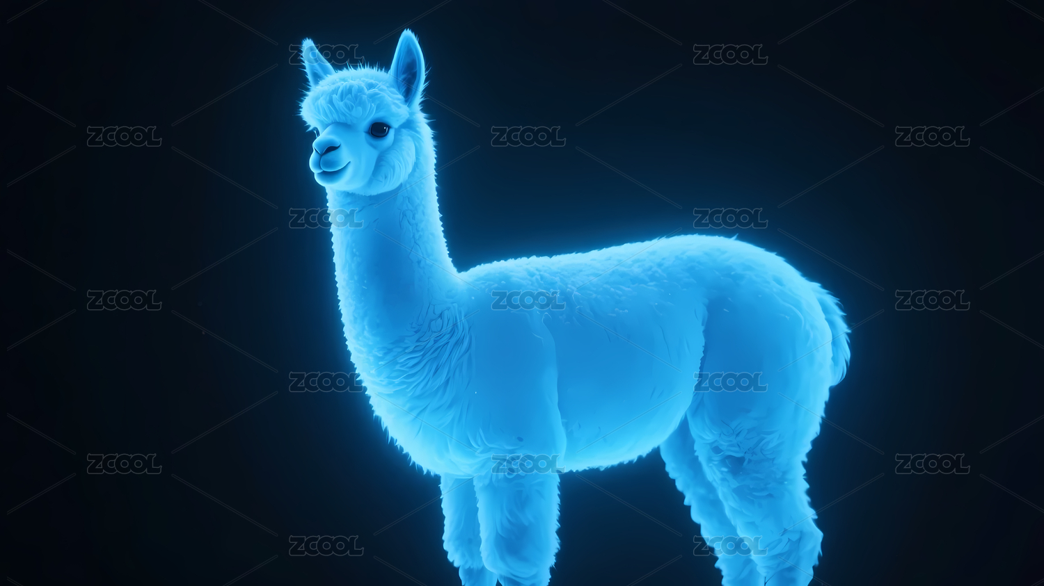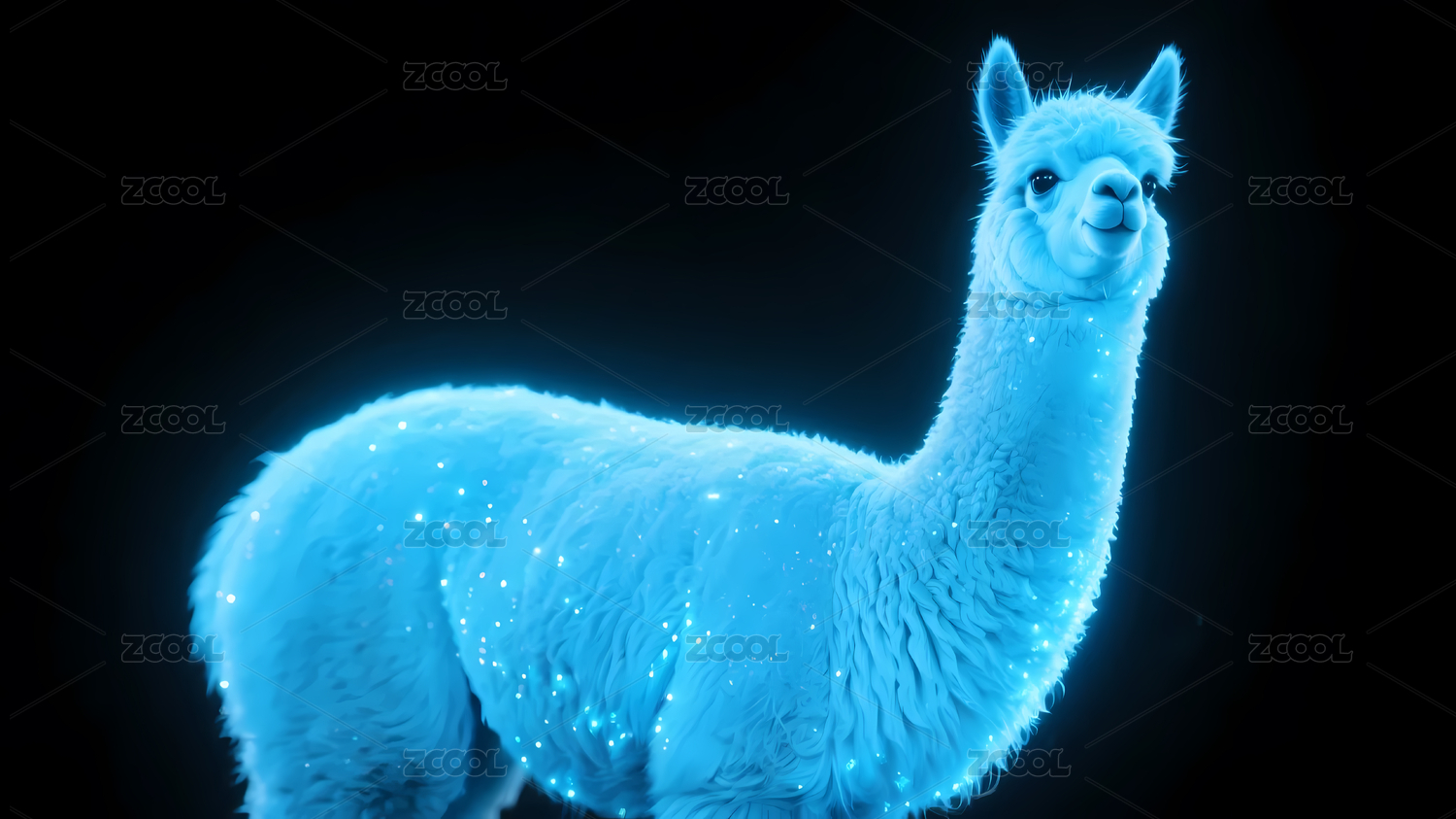 蓝色,背景,黑色,眼睛,毛发,耳朵,尾巴,鼻子,嘴巴,羊驼