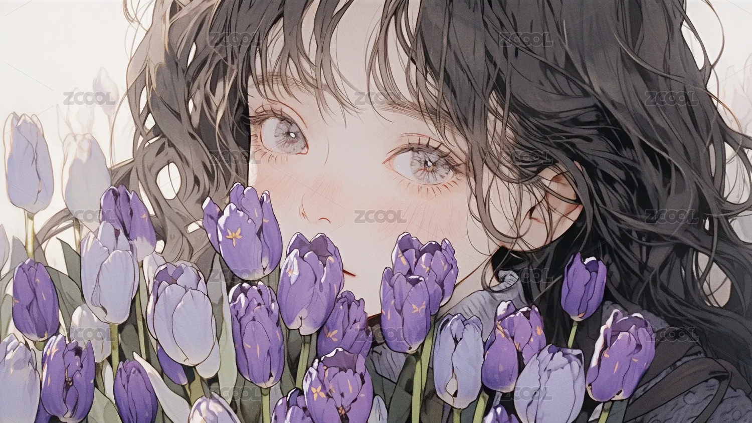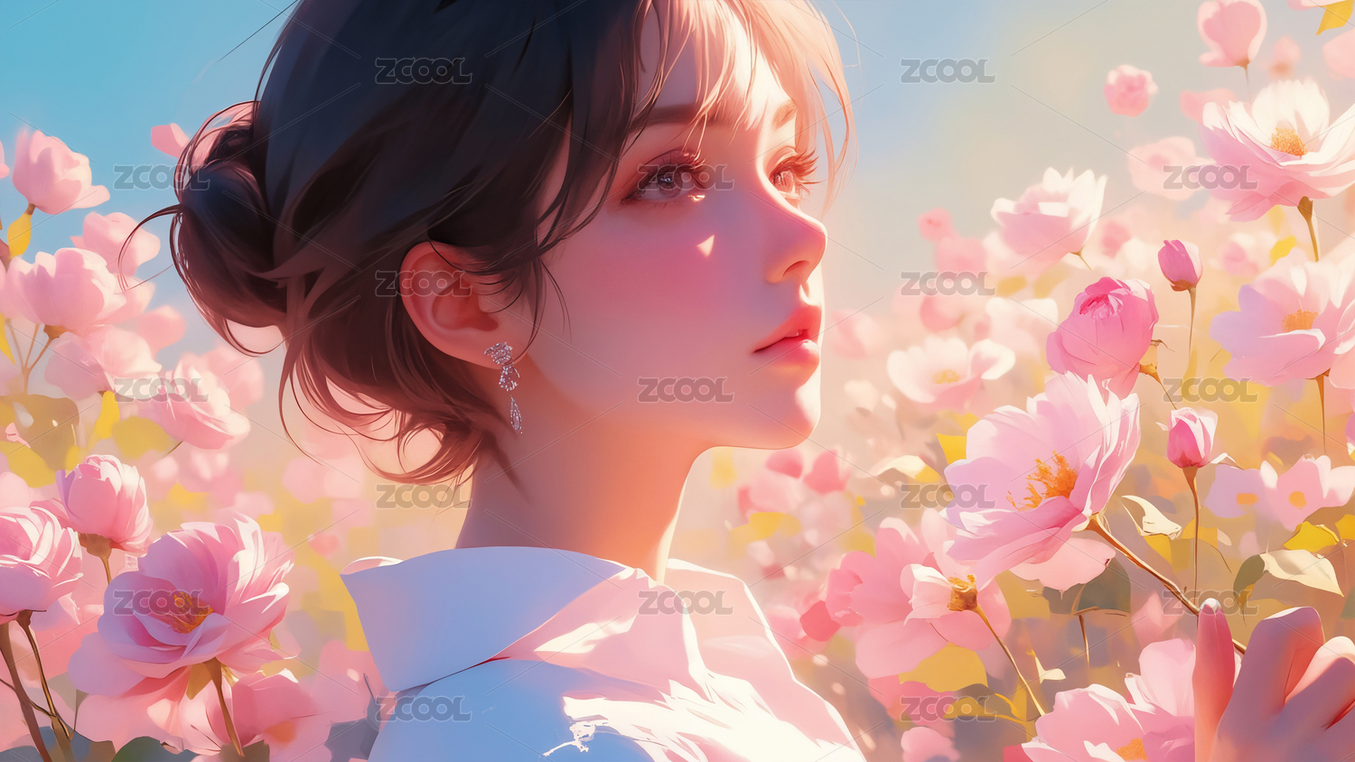 少女,金发,鲜花,花束,田野,唯美,清新,文艺,梦幻,浪漫