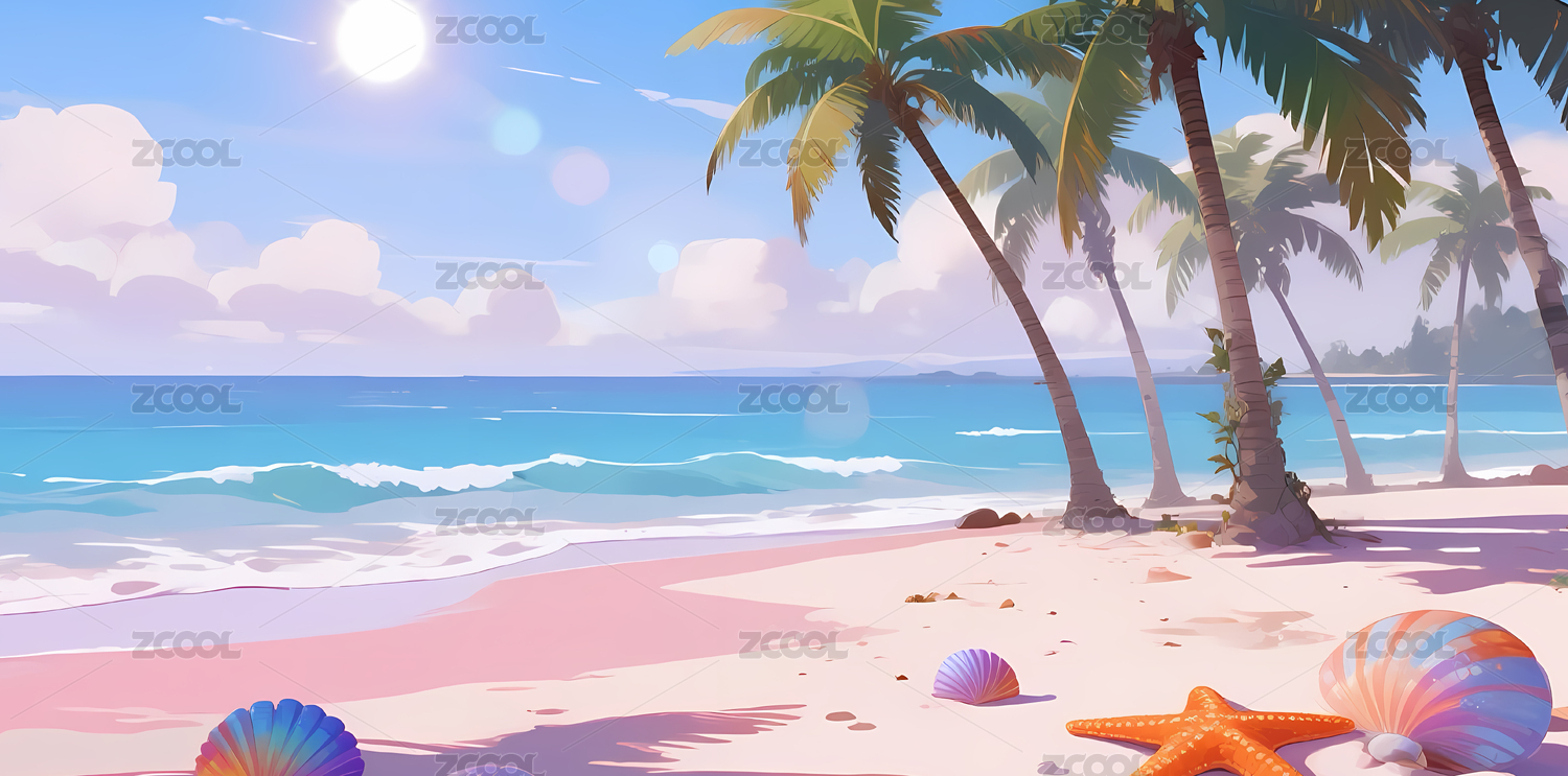 白云,景色,阳光,天空,海滩,沙滩,棕榈树,沙子,大海,海星