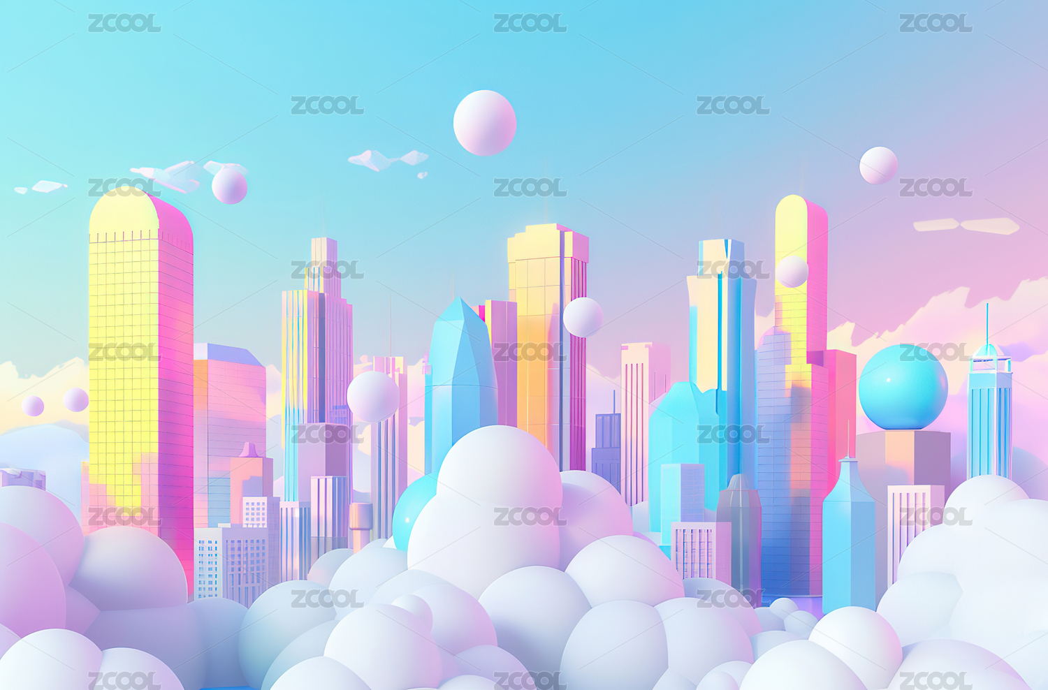 梦幻云朵城市景象
