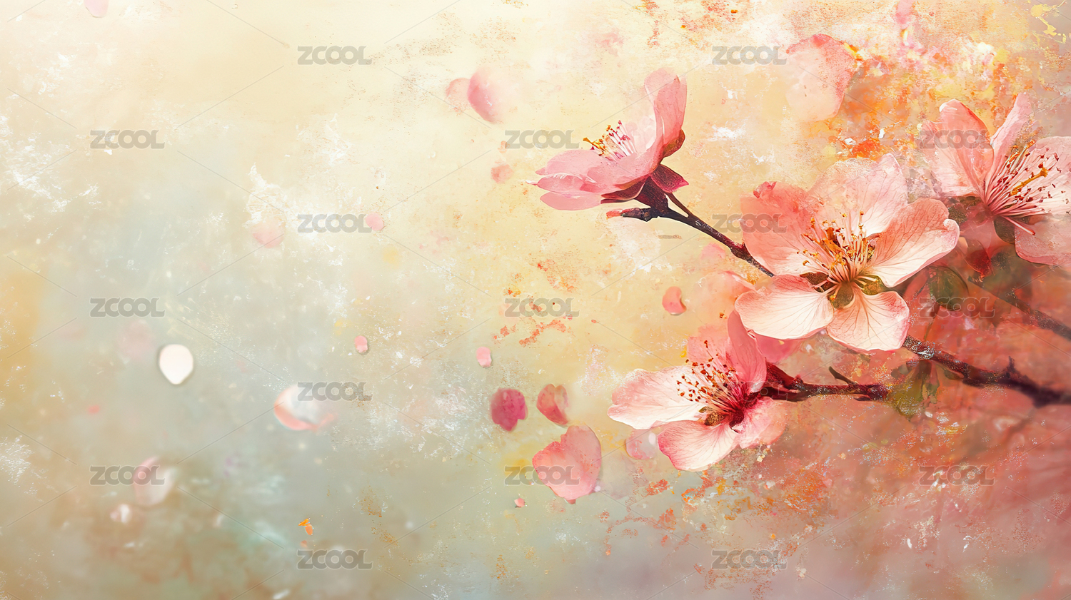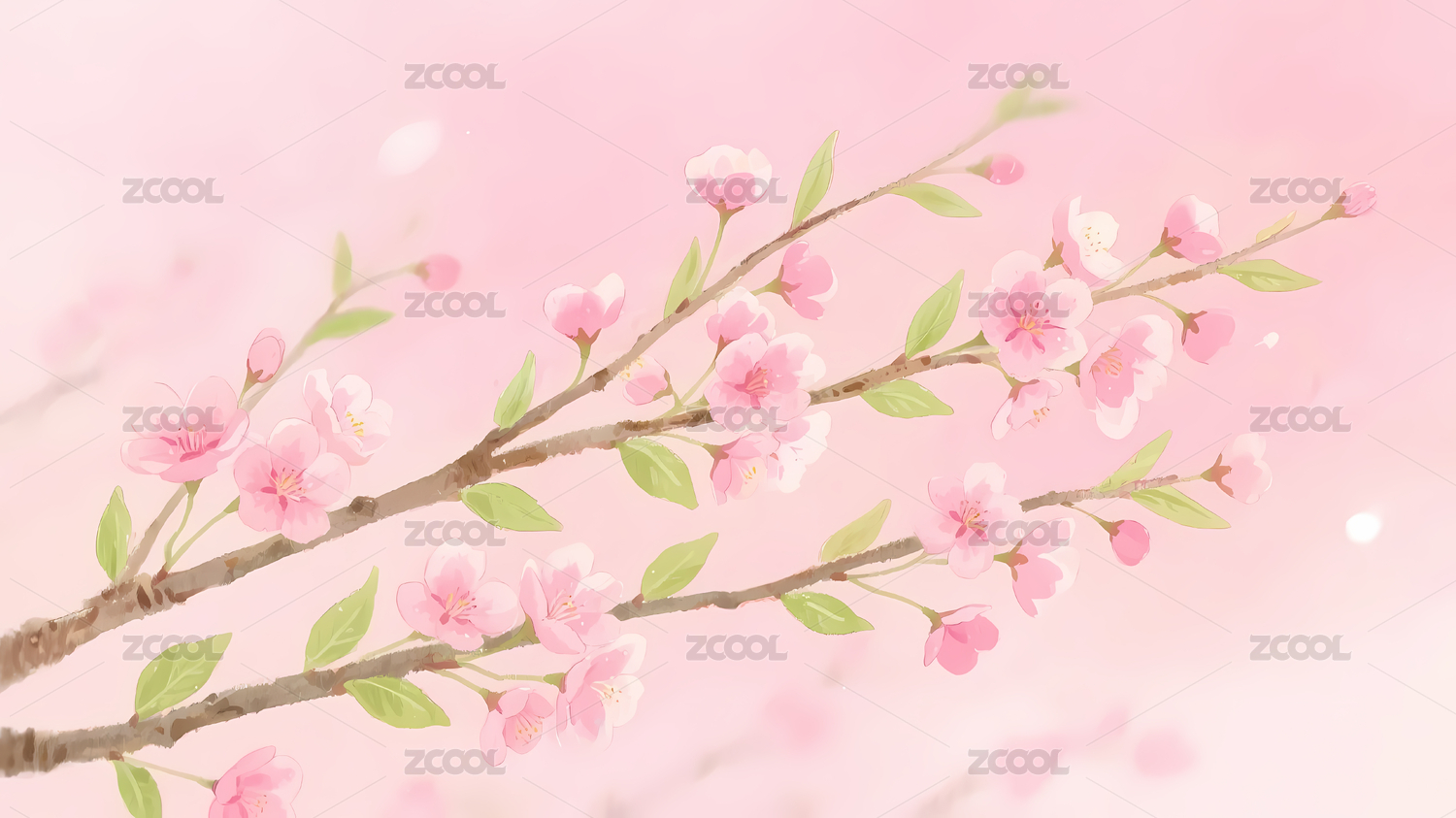 粉色樱花淡绿背景