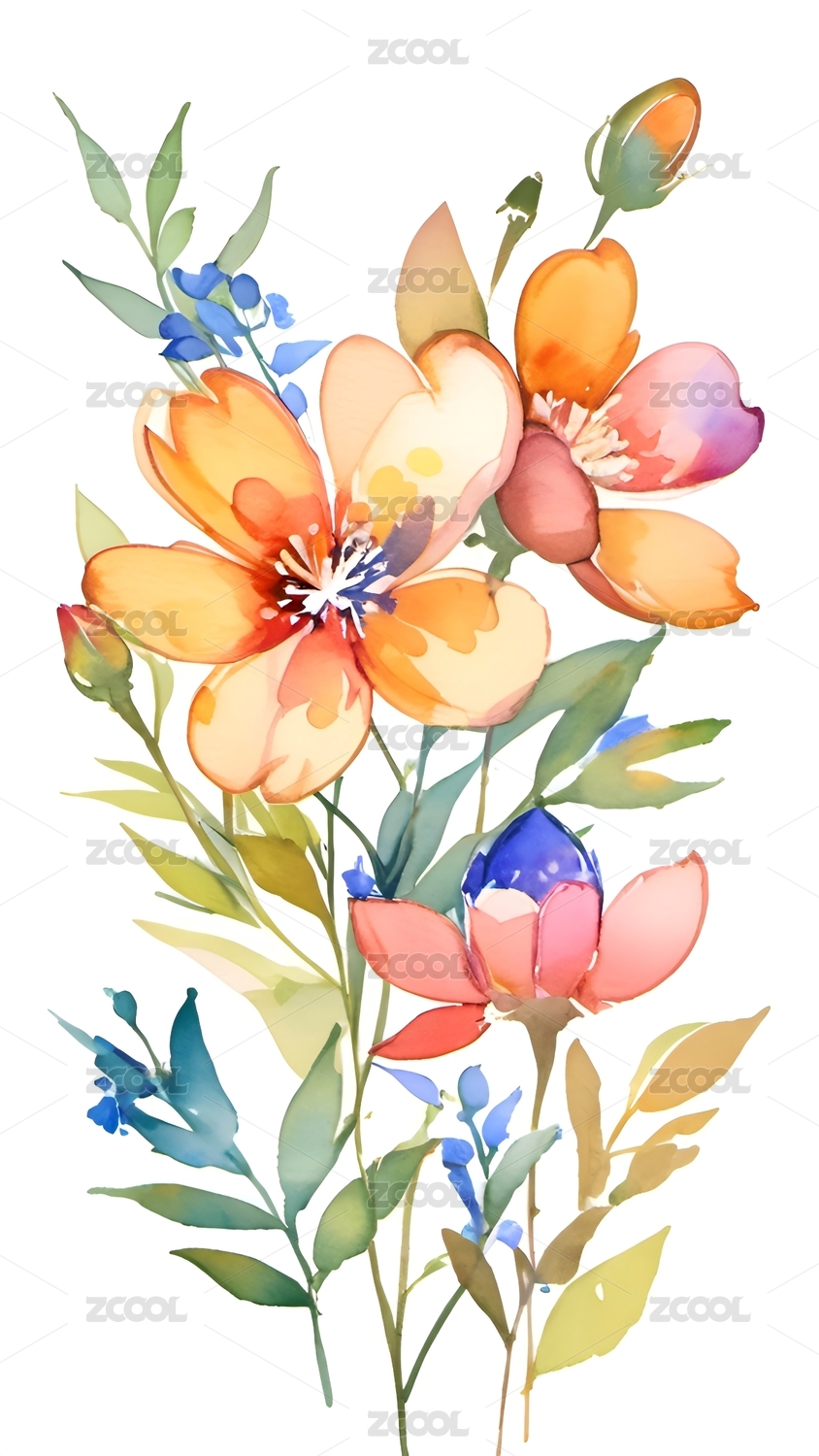 复古水彩装饰婚礼卡鲜花插画海报背景