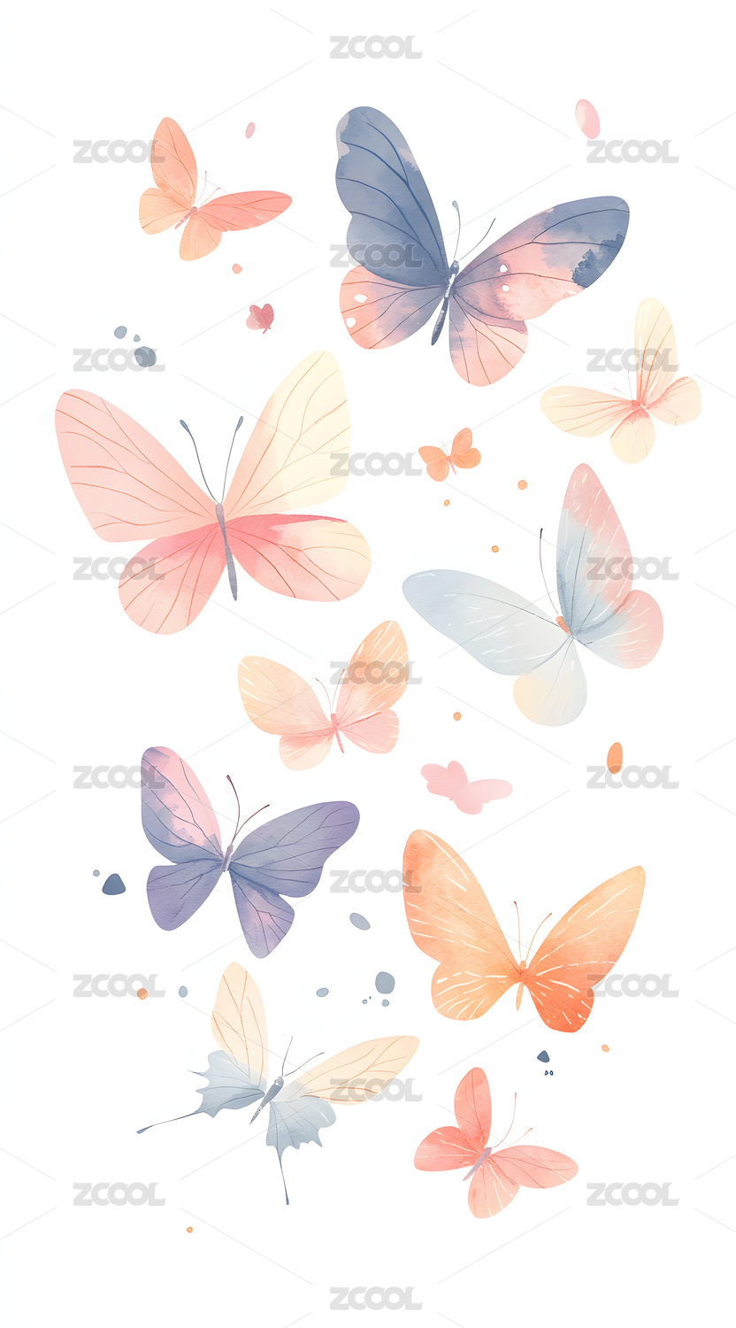 唯美梦幻展翅飞翔的蝴蝶图案印花插画