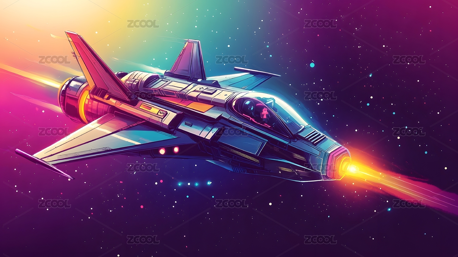 未来感宇宙飞船遨游星空