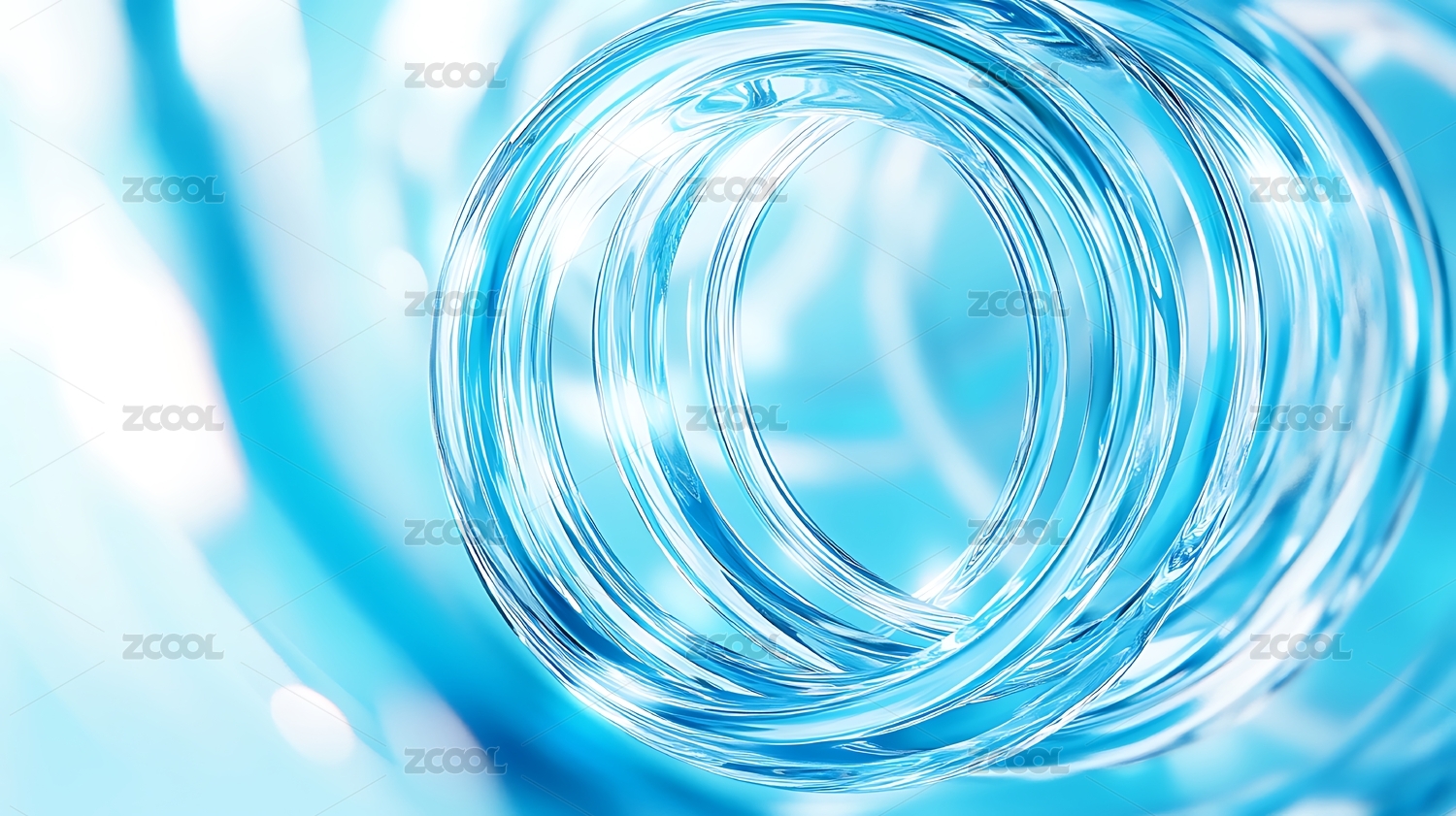 蓝色透明的圆环玻璃特写,干净科技感背景