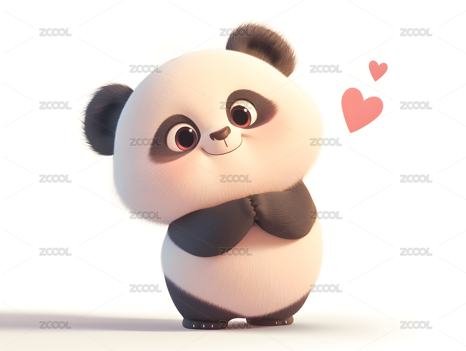 3D,可爱,卡通,熊猫,打招呼,招手,插画,动物,微笑,国宝