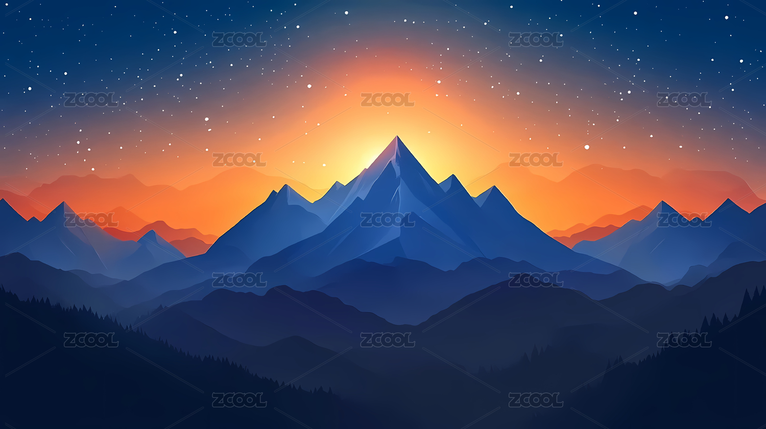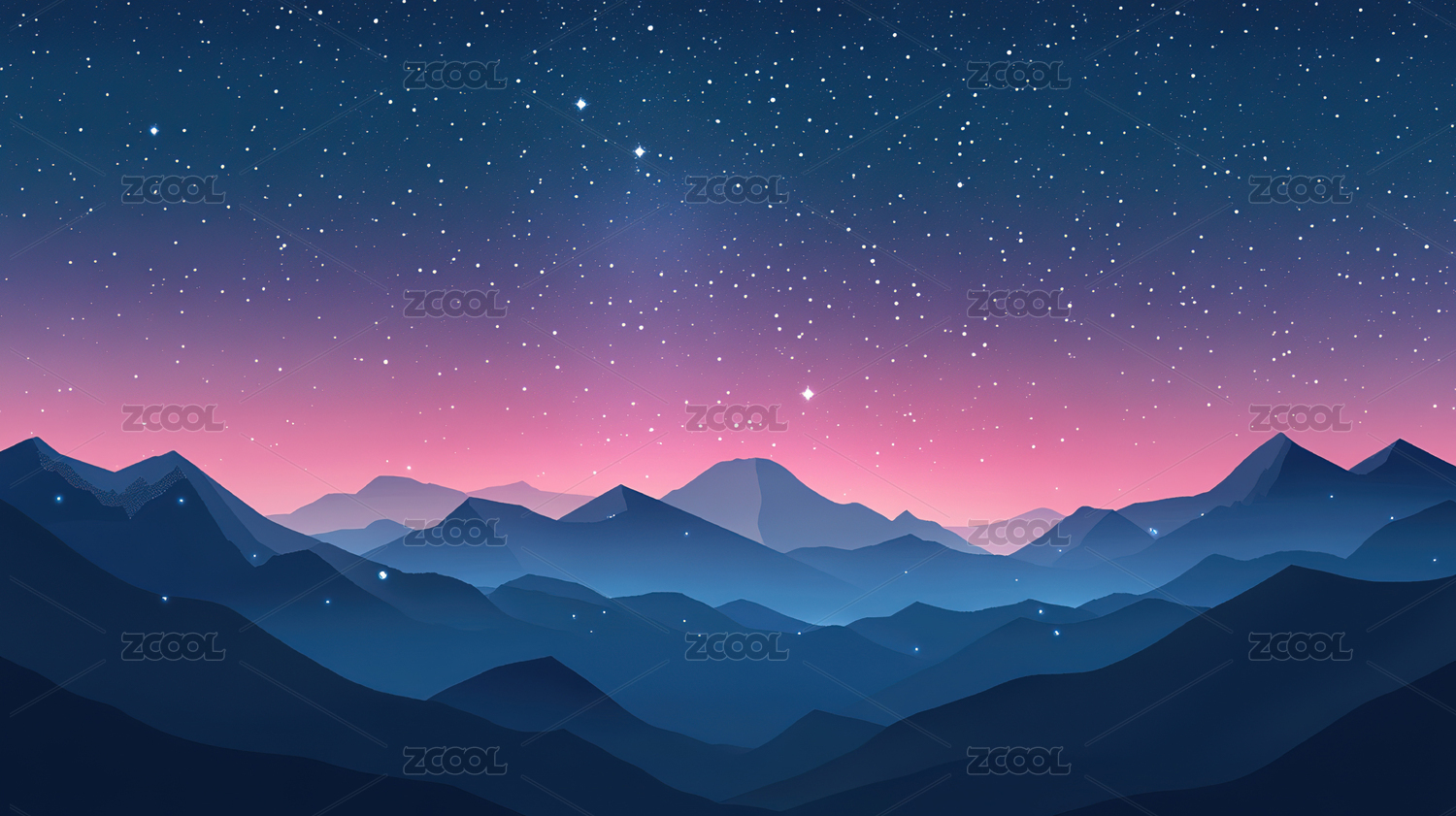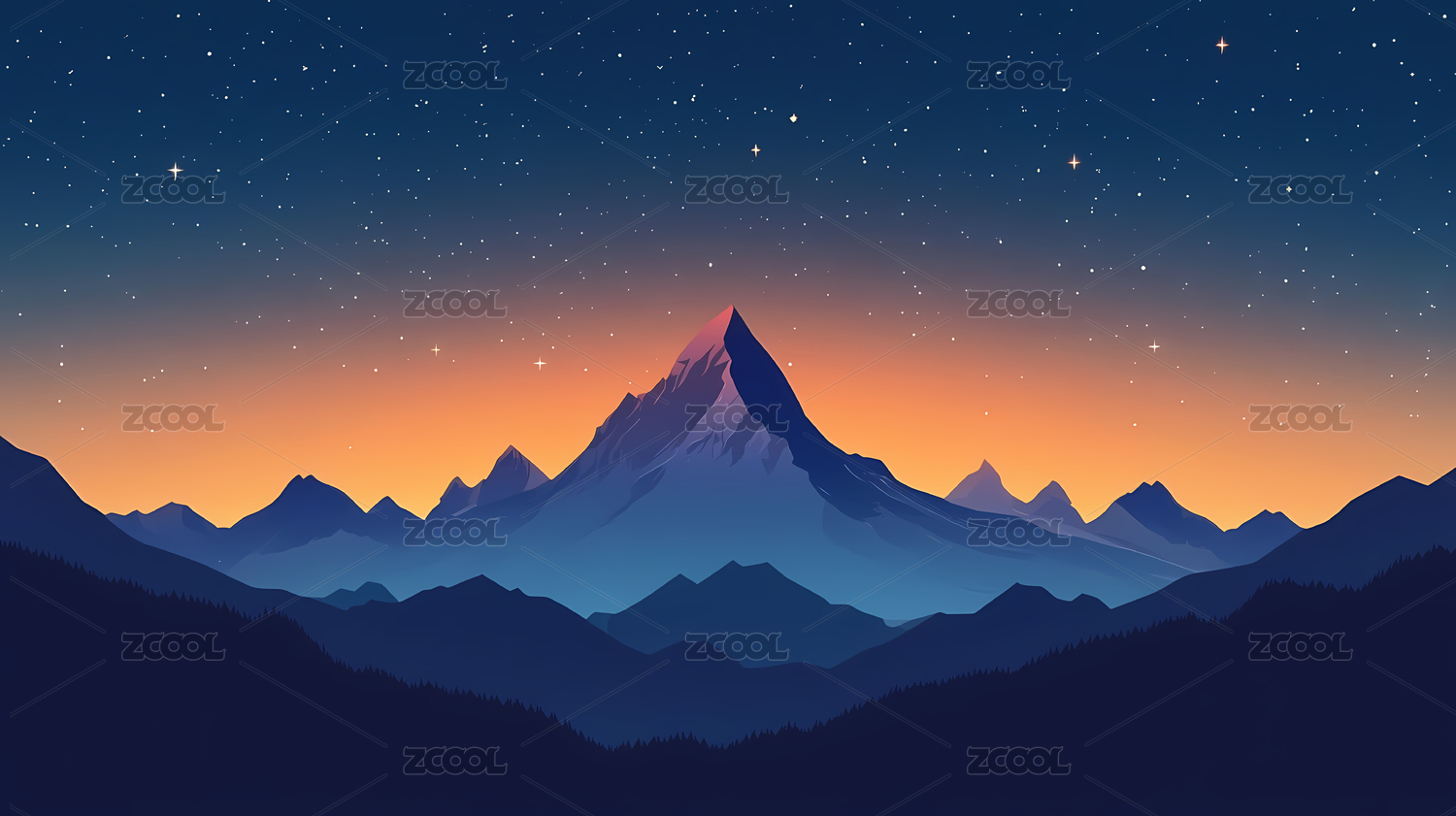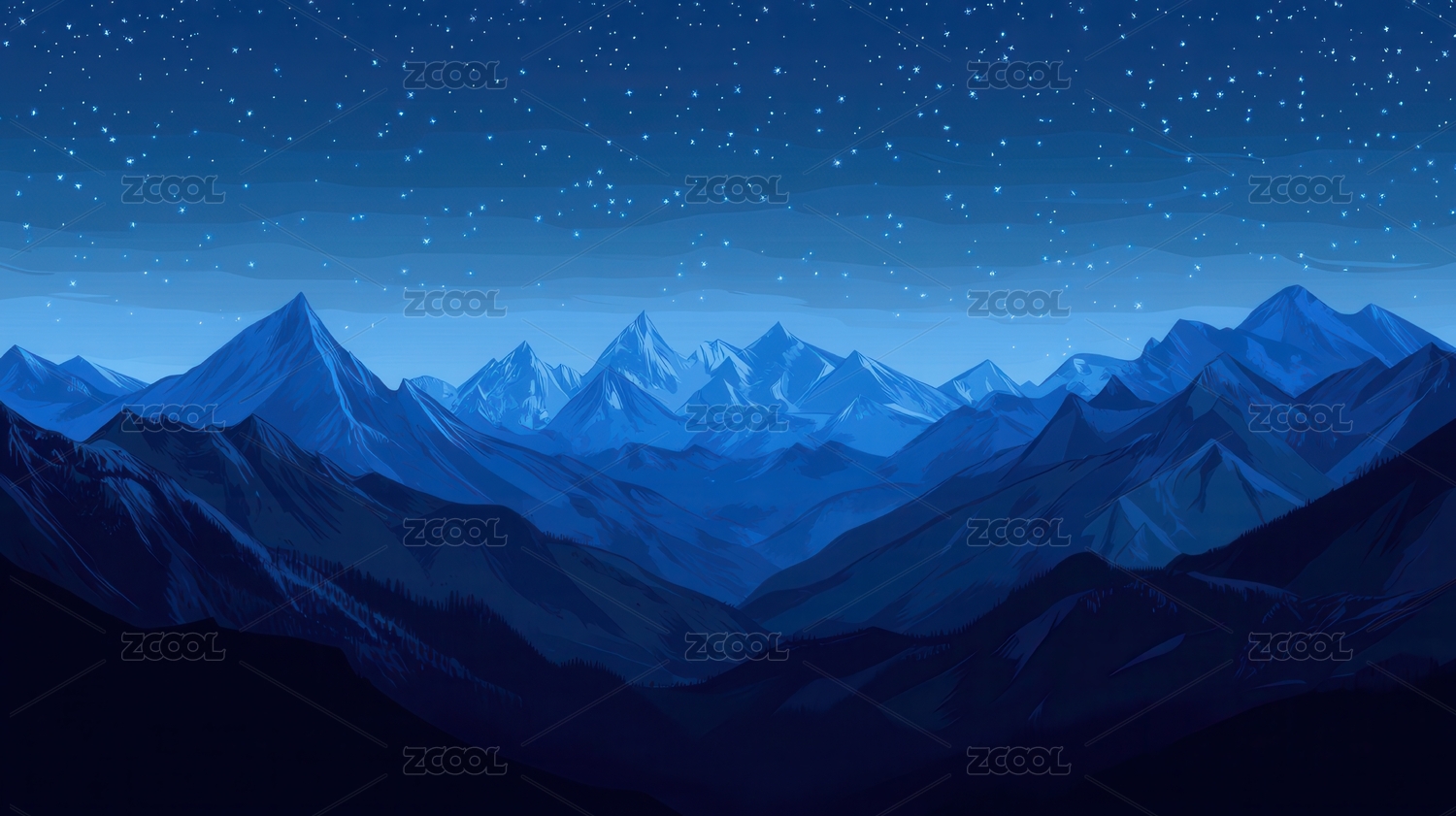 星空,雪山,夜晚,背景,自然,户外,风景,宁静,插画,艺术