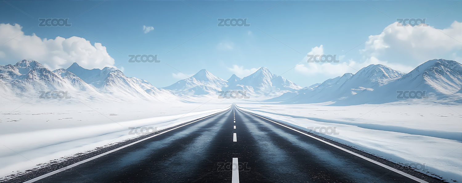 公路,雪山,景色,风光,汽车,空景,留白,交通,冬天,旅游