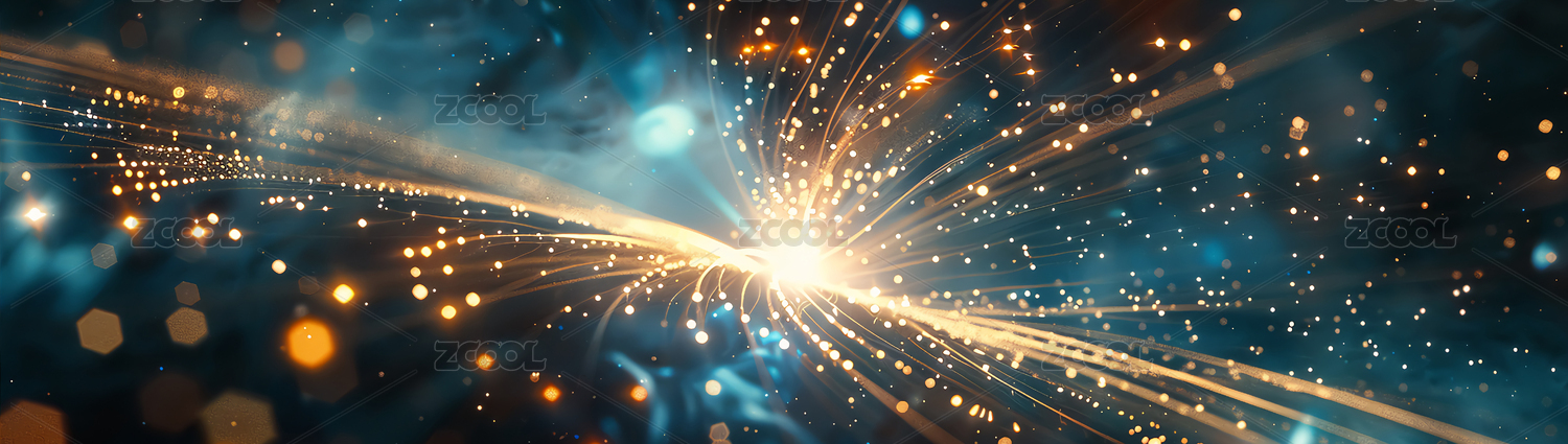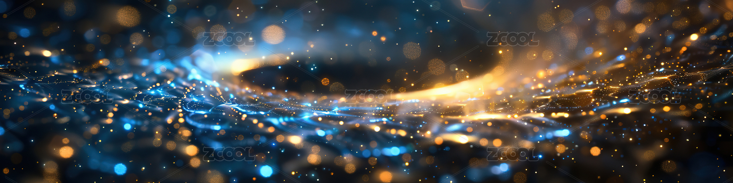 闪烁着蓝色、黄色星光的粒子线条