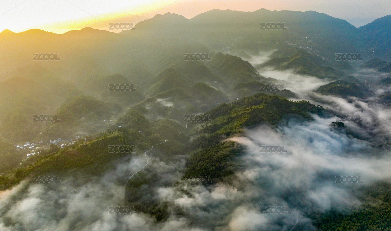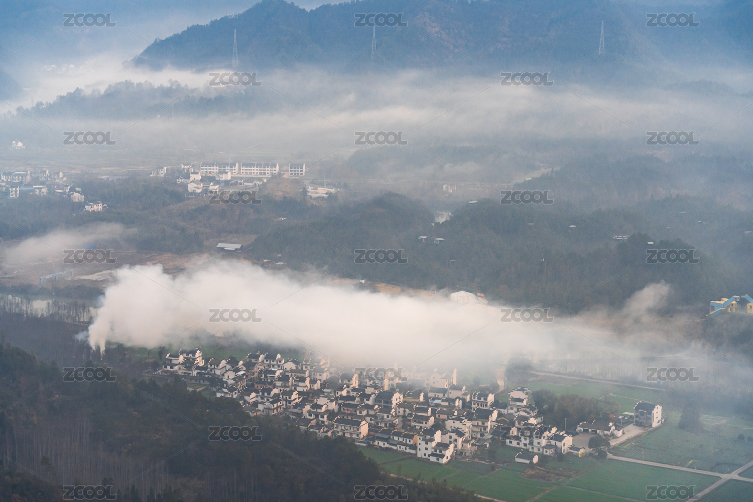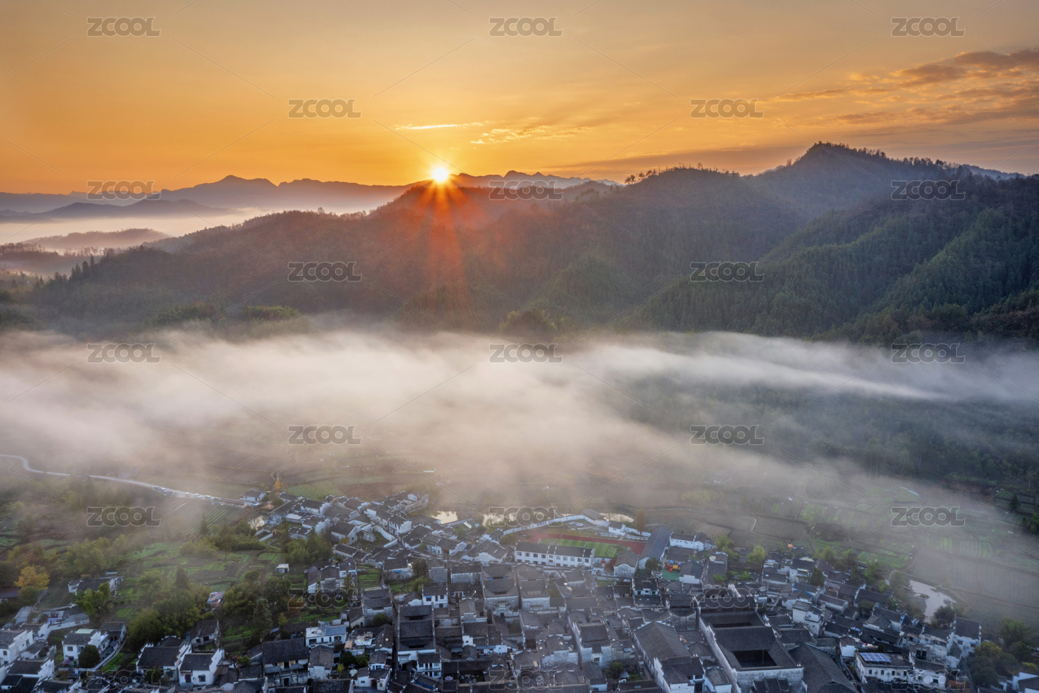 大洲源,皖南,歙县,徽州,文山村,山脉,江南,村落,航拍,云海
