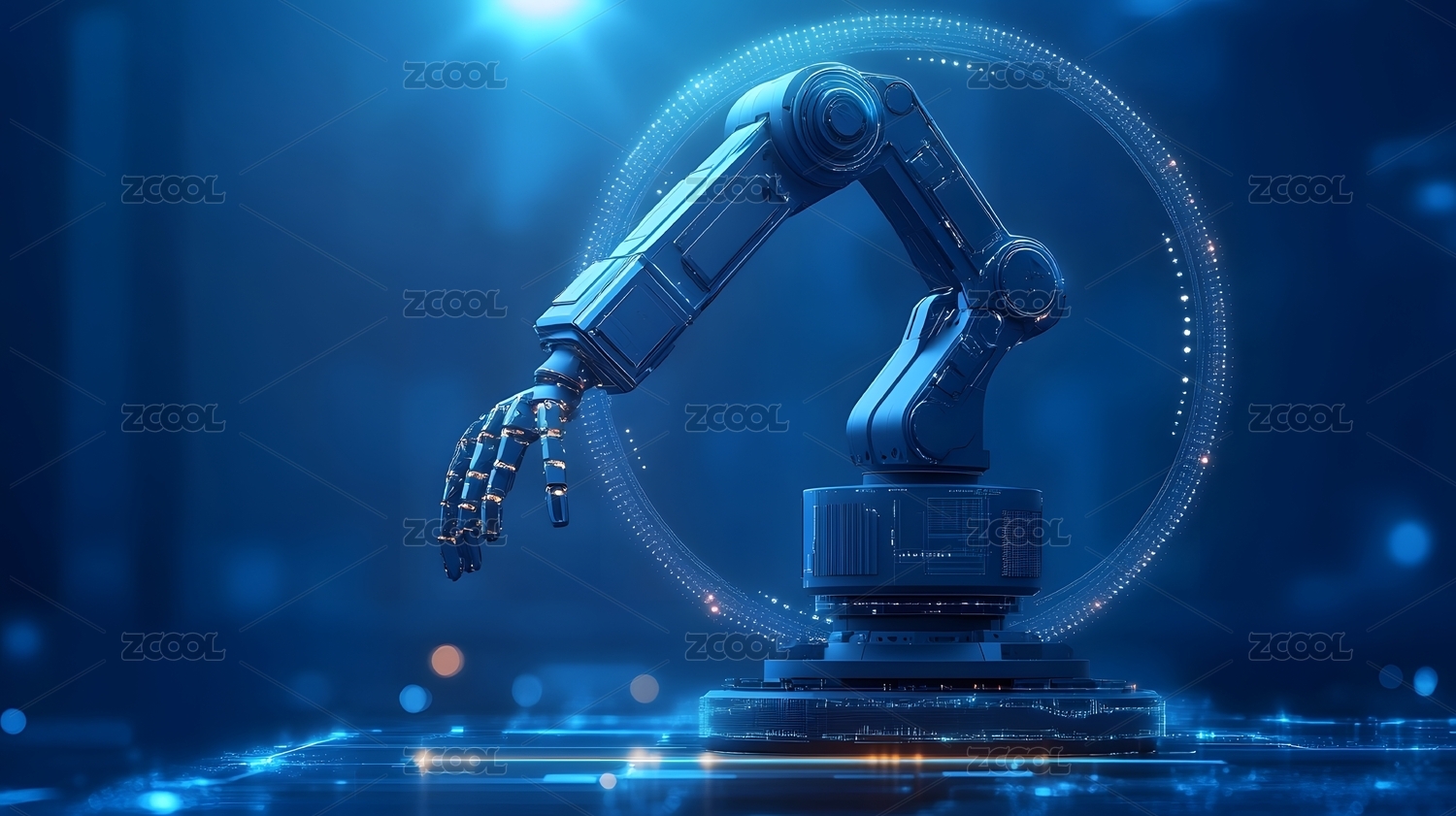蓝色背景下的机械臂科技感图像