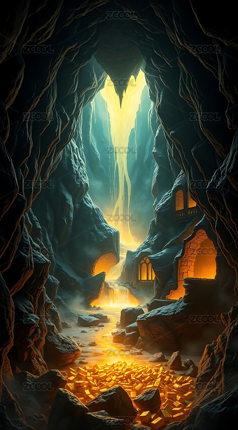 光影,洞穴,岩石,岩浆,通道,熔岩,流,钟乳石,炽热,橙红色