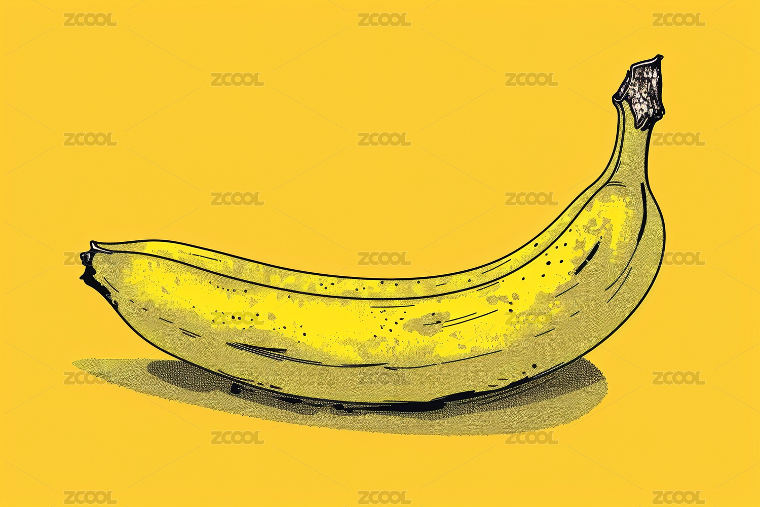 可爱的黄香蕉卡通线稿版画水果插画元素