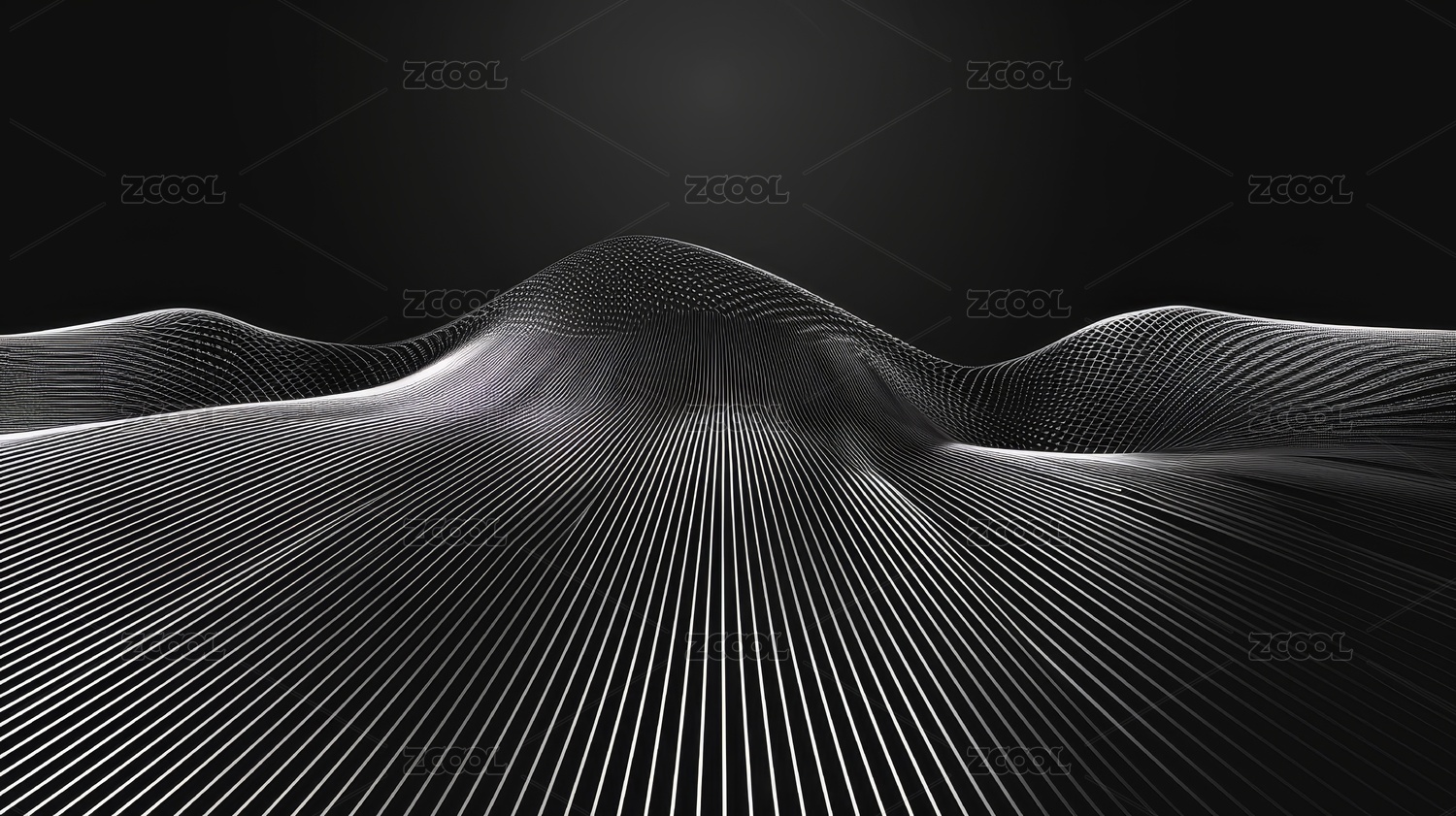 黑白线条波浪山丘图