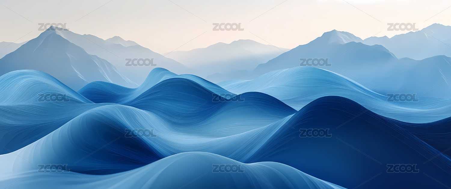 数码蓝白色渐变层叠波浪抽象图形海报背景