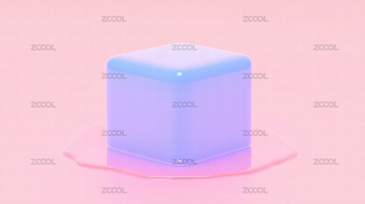 蓝色立方体在粉色背景上的融化效果