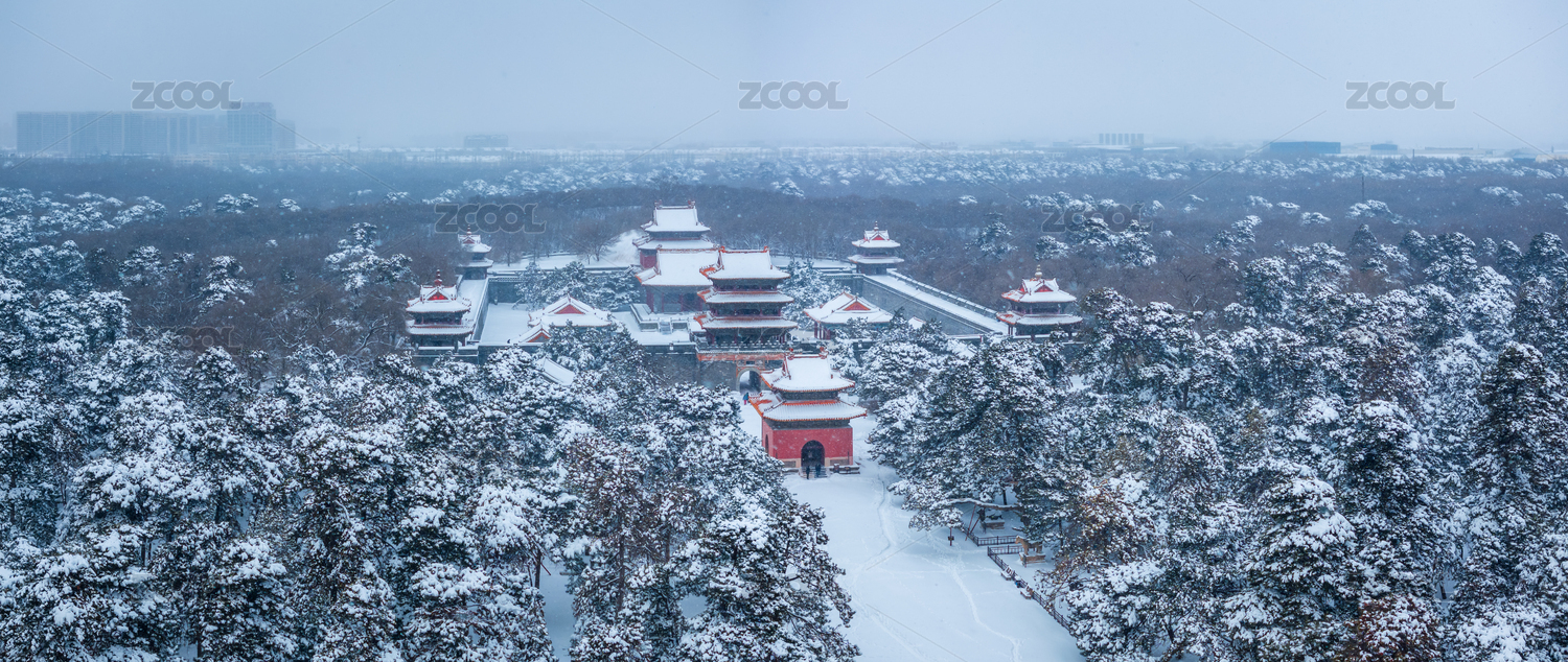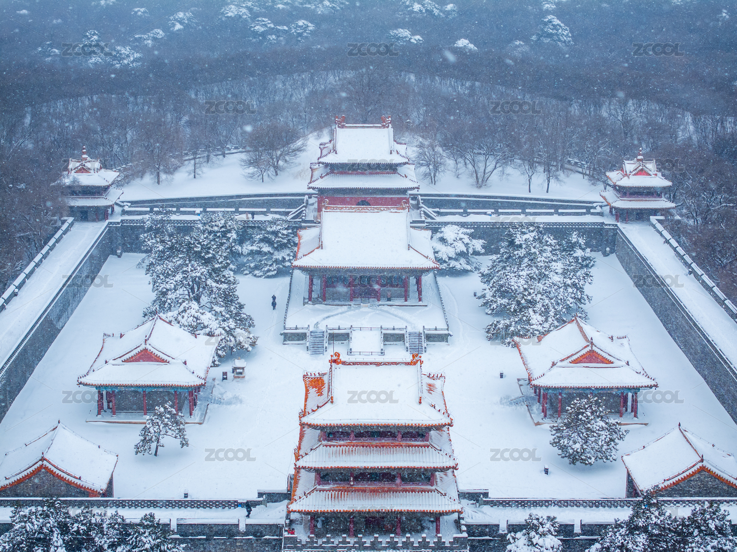 沈阳古建筑东陵清福陵冬季雪景全景航拍