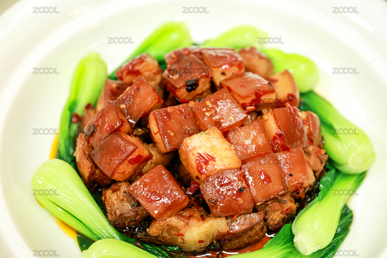 美味的家常菜红烧排骨盛放在白色的瓷器碗里