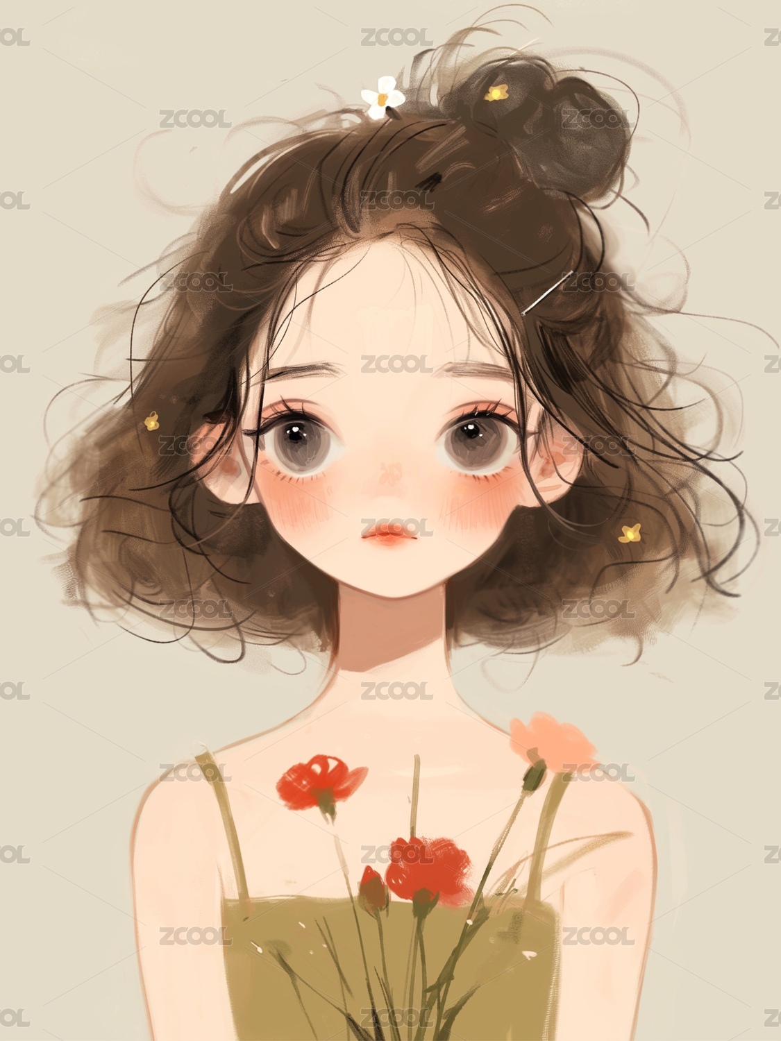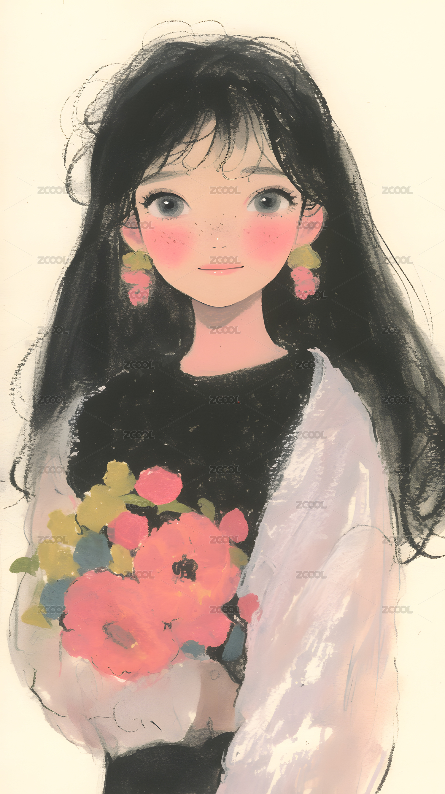 艺术,绘画,色彩,梦幻,唯美,作品,女孩,温柔,鲜花,手绘