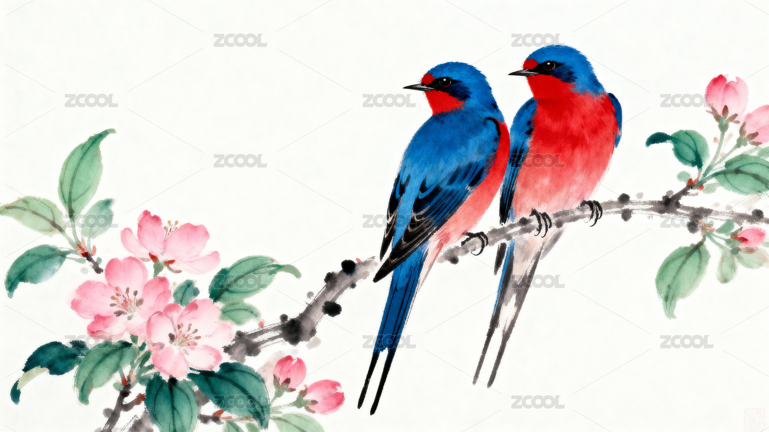 艺术,壁纸,背景,图案,精美,水墨画,写意画,枝头,鸟类,红花