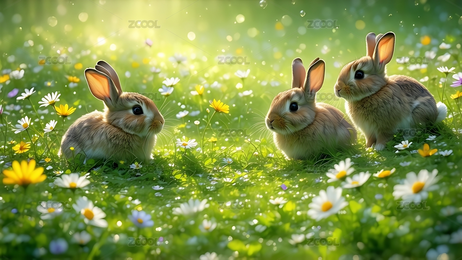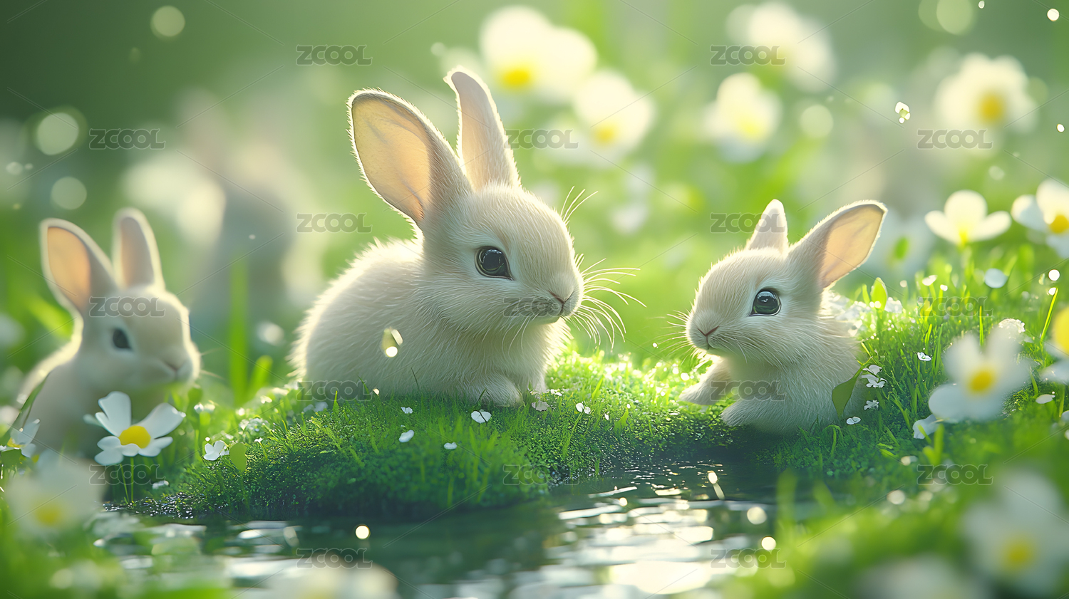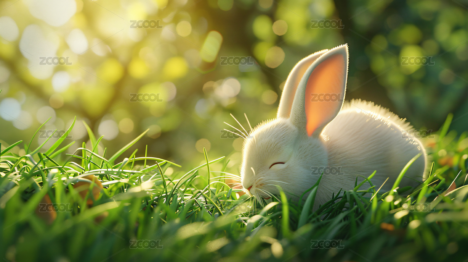 自然,阳光,绿色,草地,清新,和平,美好,活力,生命,兔子