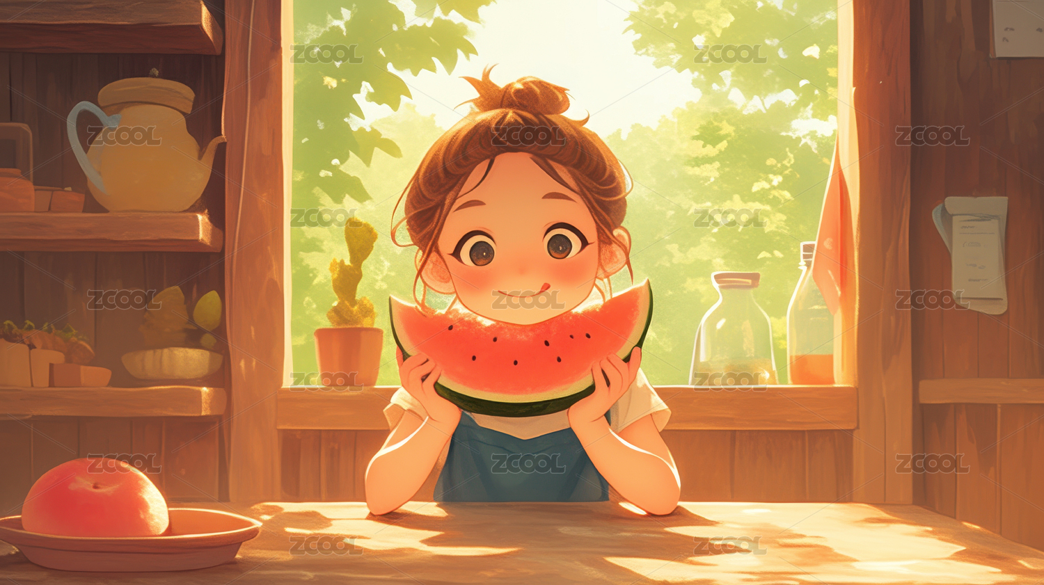 背景,壁纸,高清,阳光,田园,艺术,插画,可爱,清新,西瓜