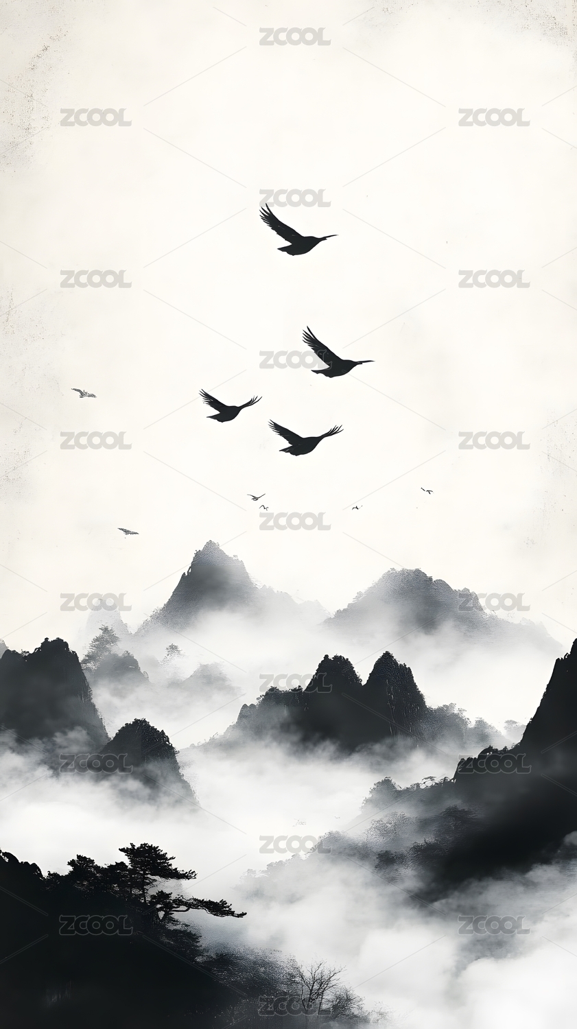 背景,壁纸,绘画,艺术,水墨画,山水画,山峦,飞鸟,风景,自然