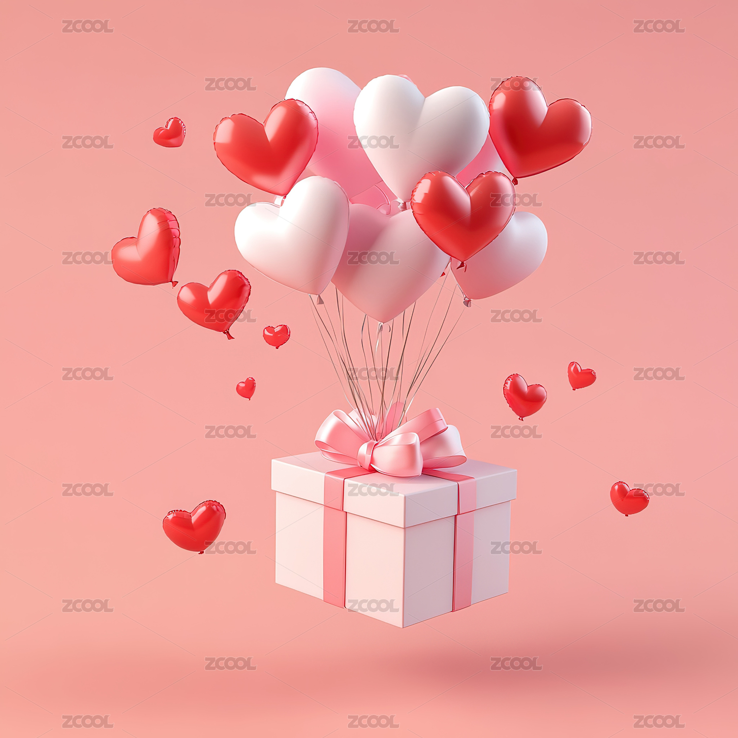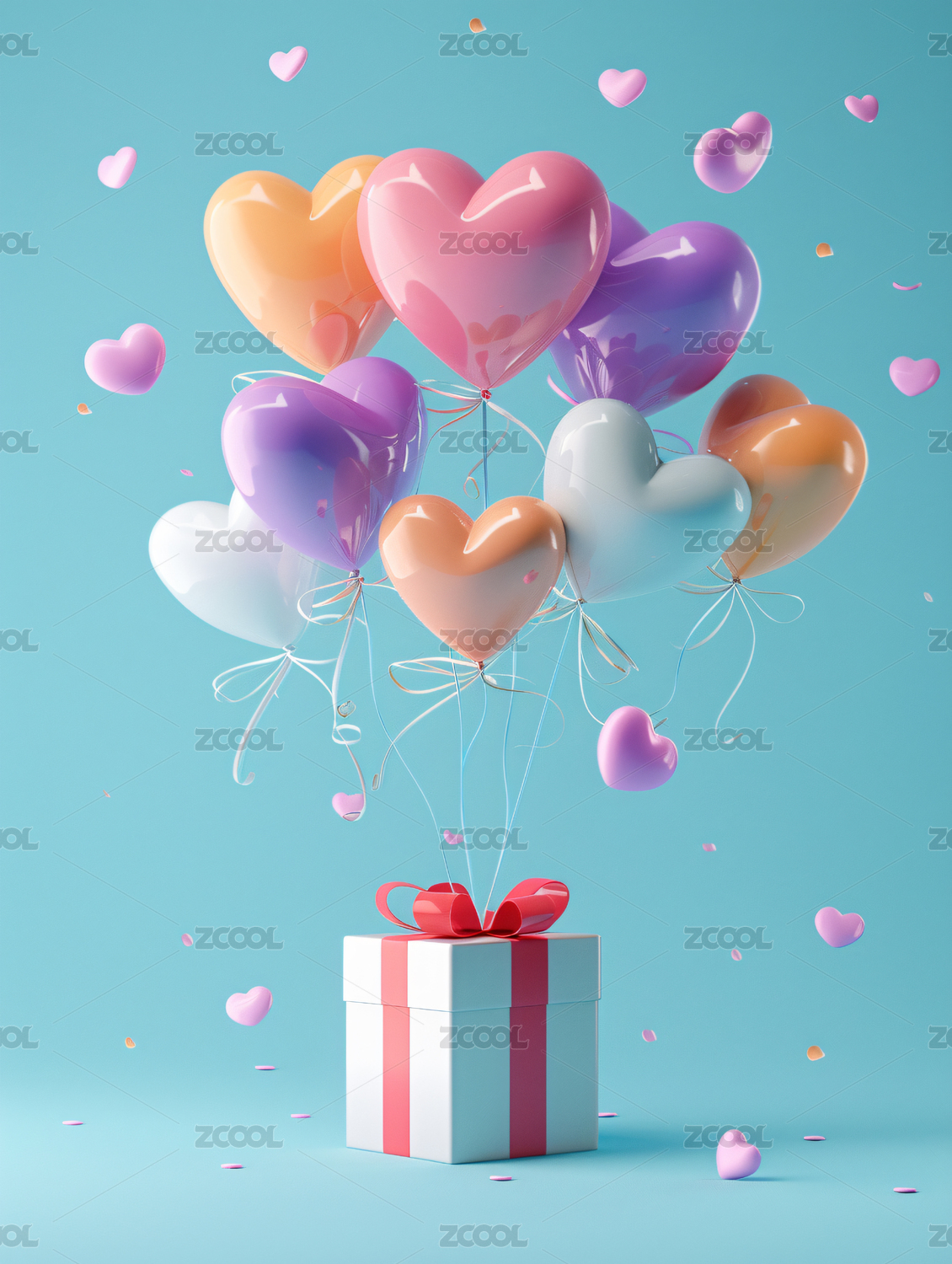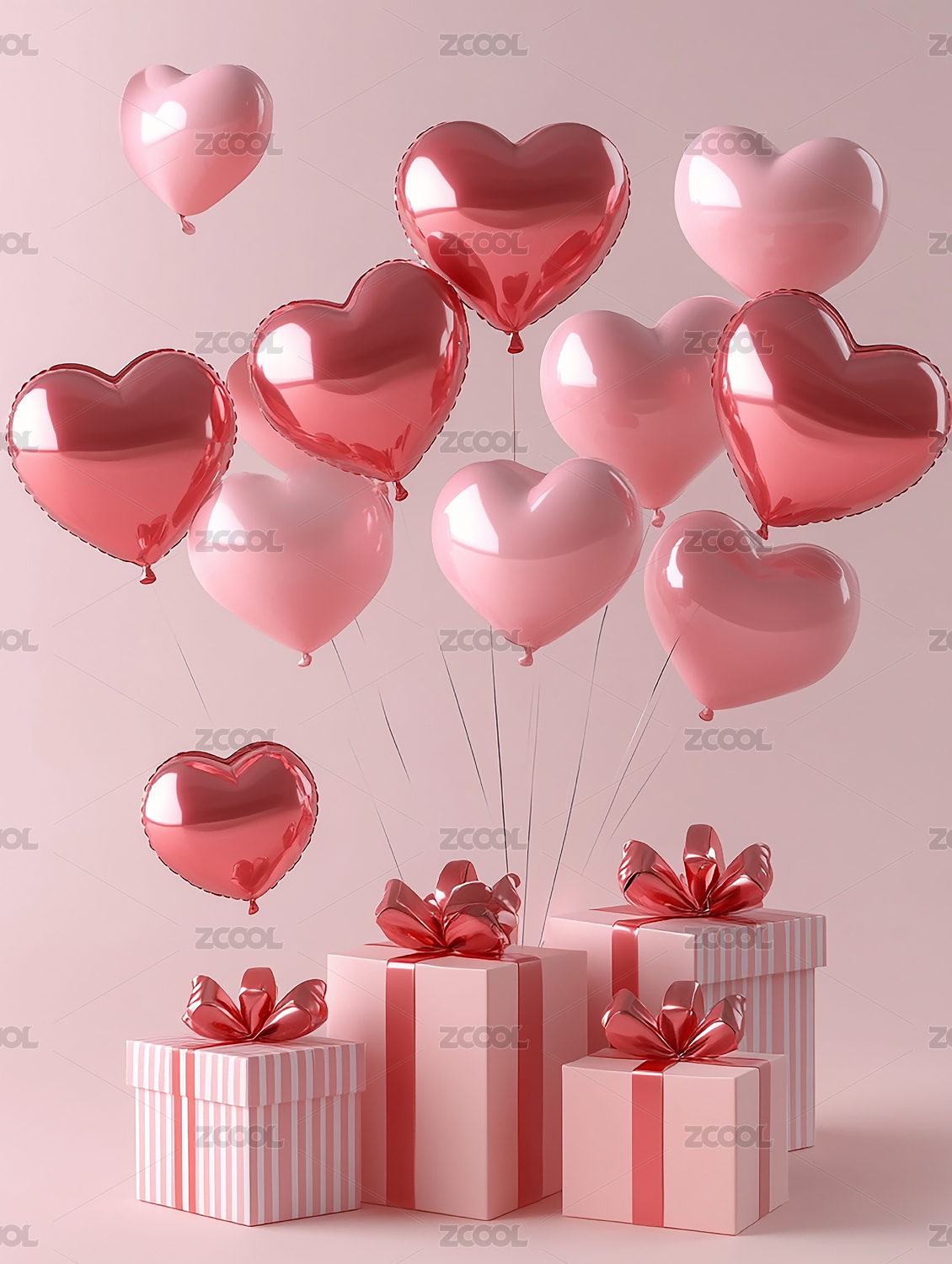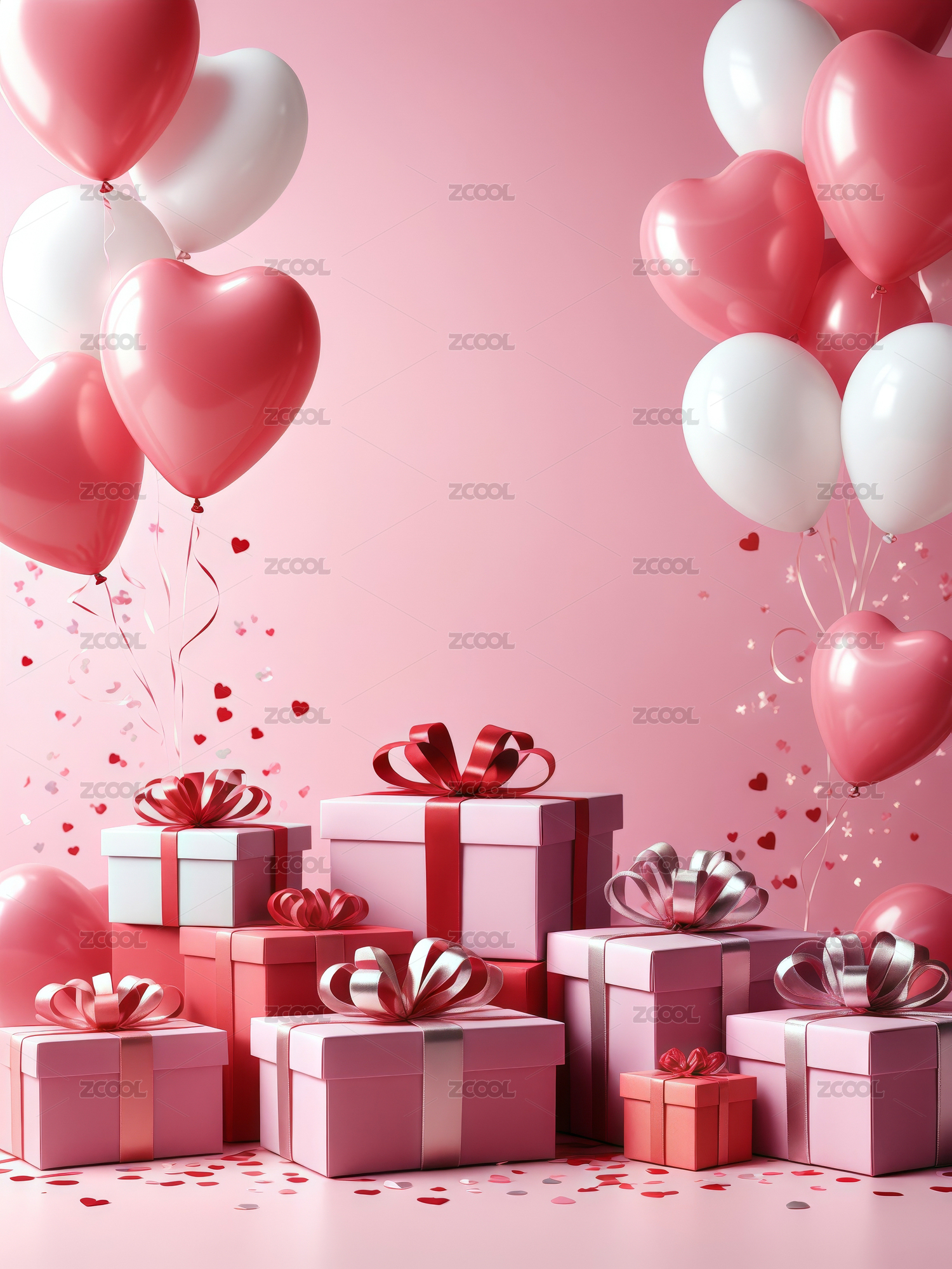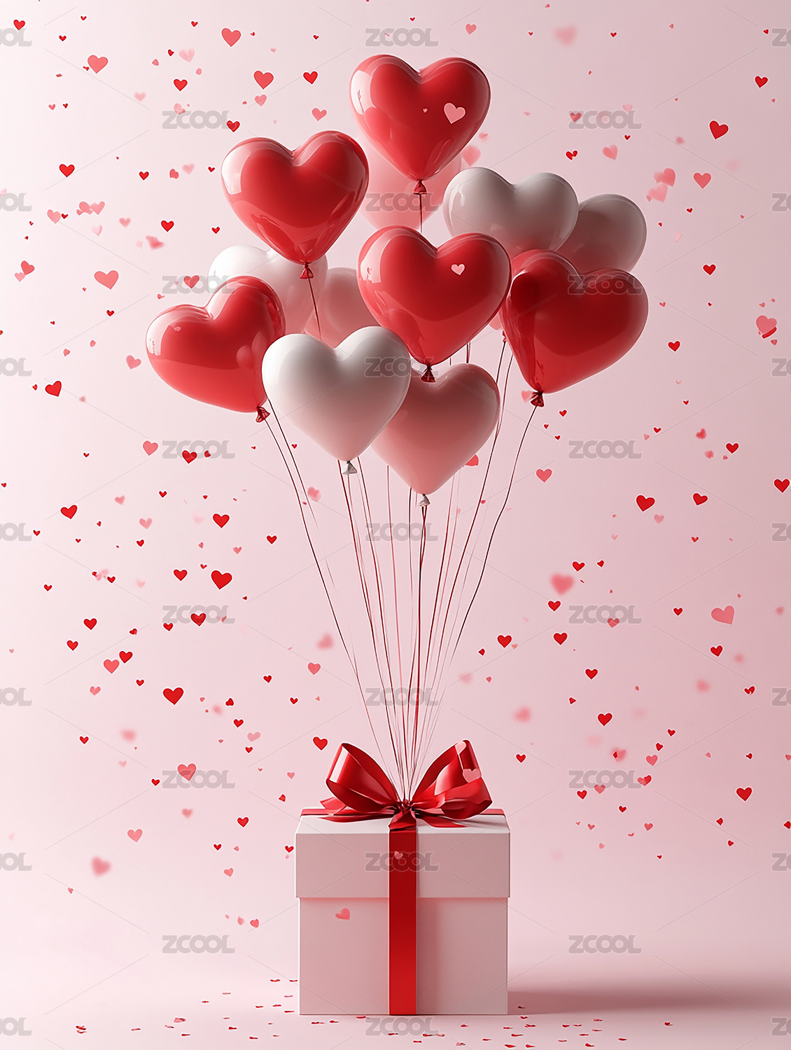 粉色爱心气球与礼盒浪漫情人节