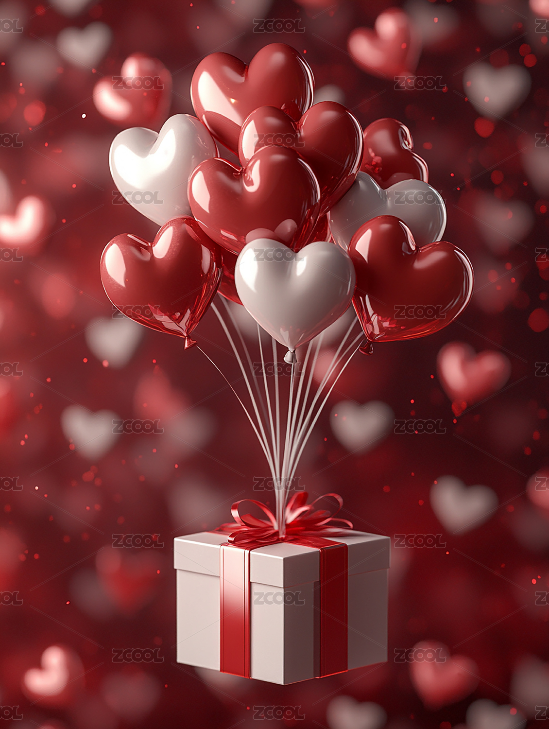 爱心气球和礼盒背景