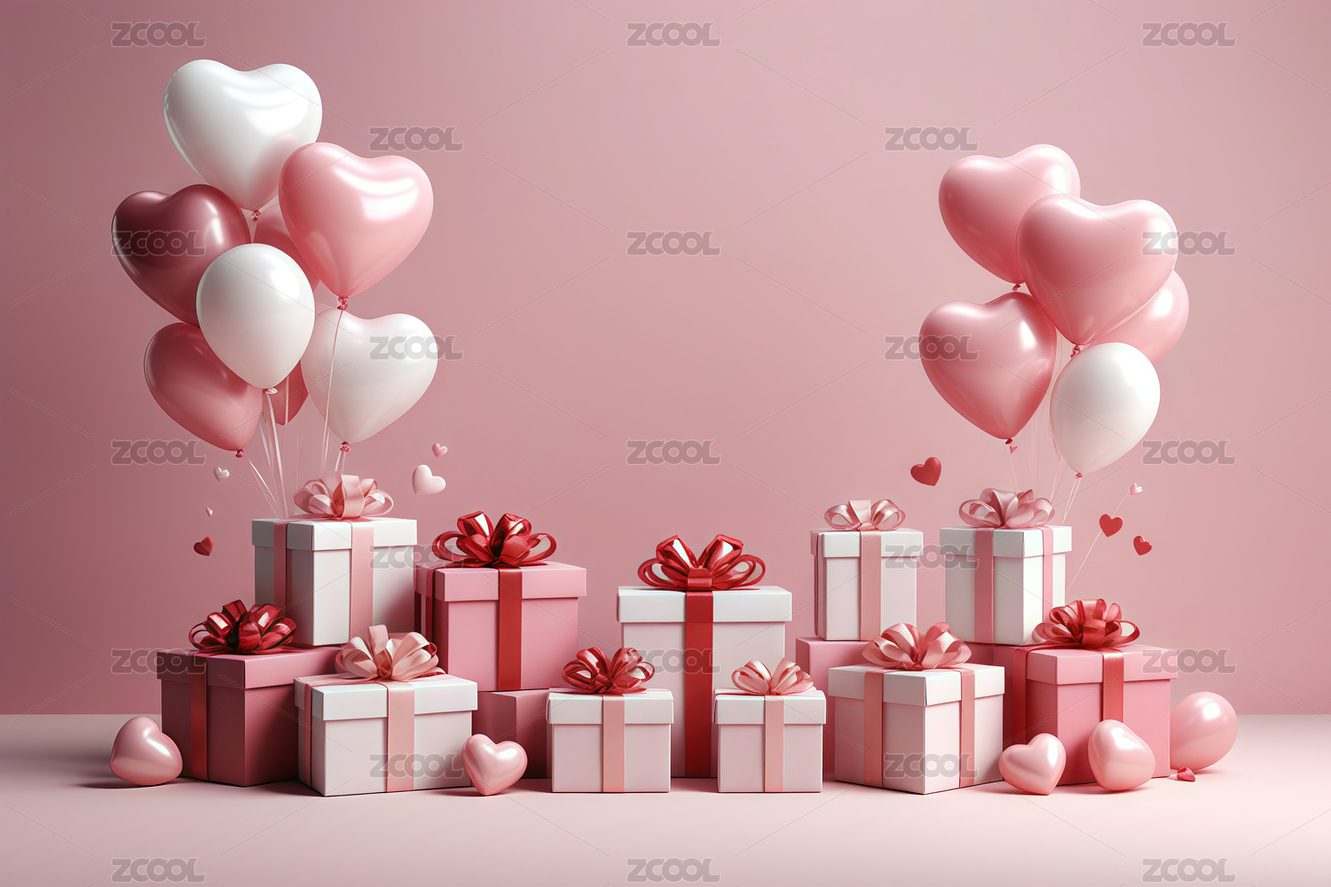 情人节,粉红色,白色,心形,气球,云朵,舞台,讲台,爱情,浪漫