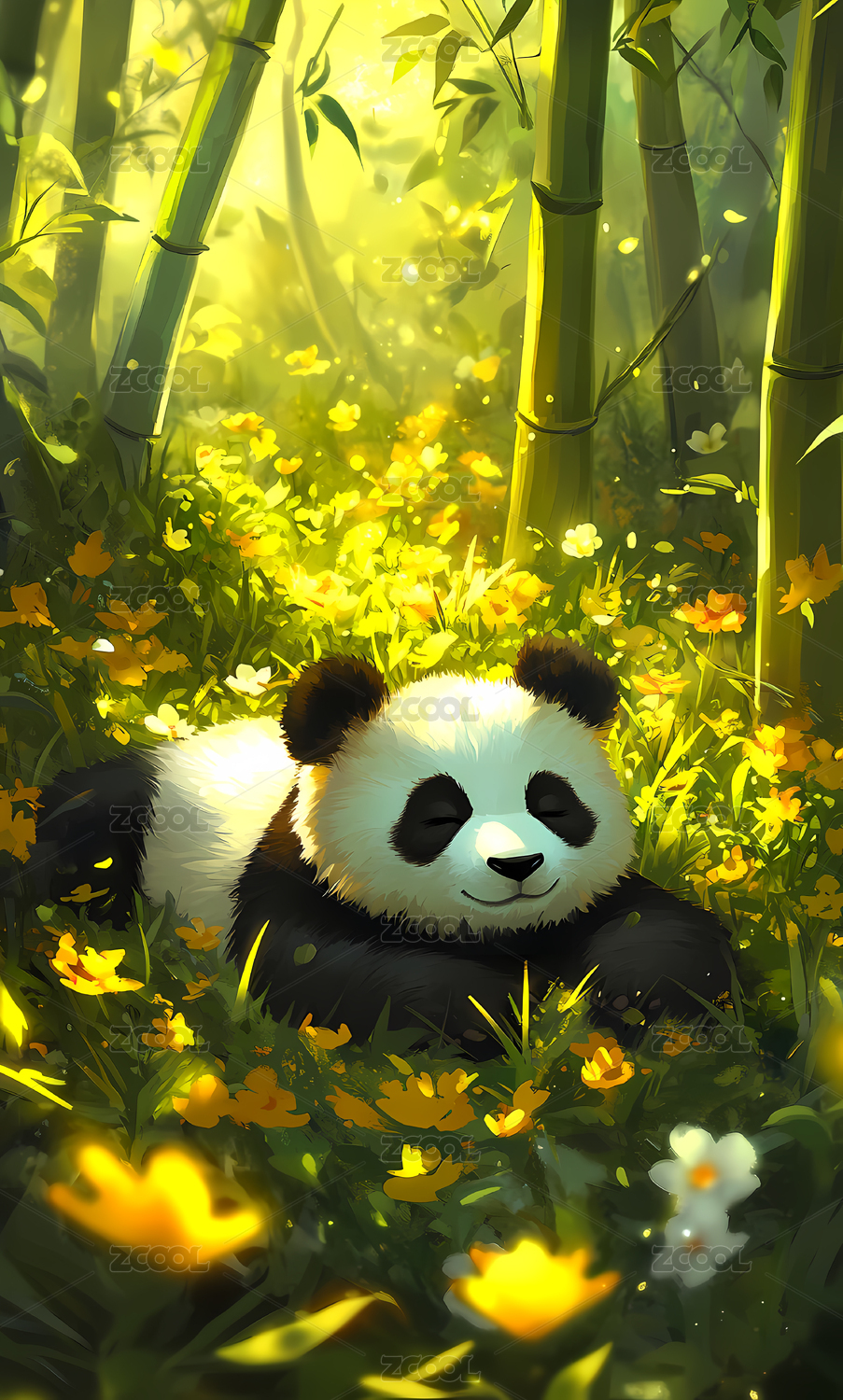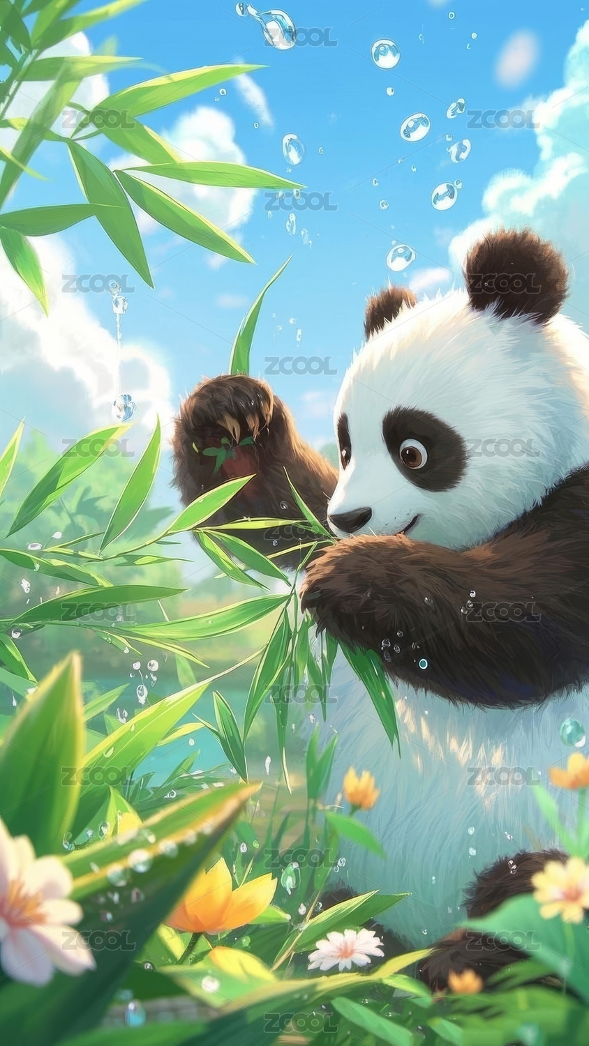 可爱治愈野外竹林的国宝大熊猫3D卡通插画