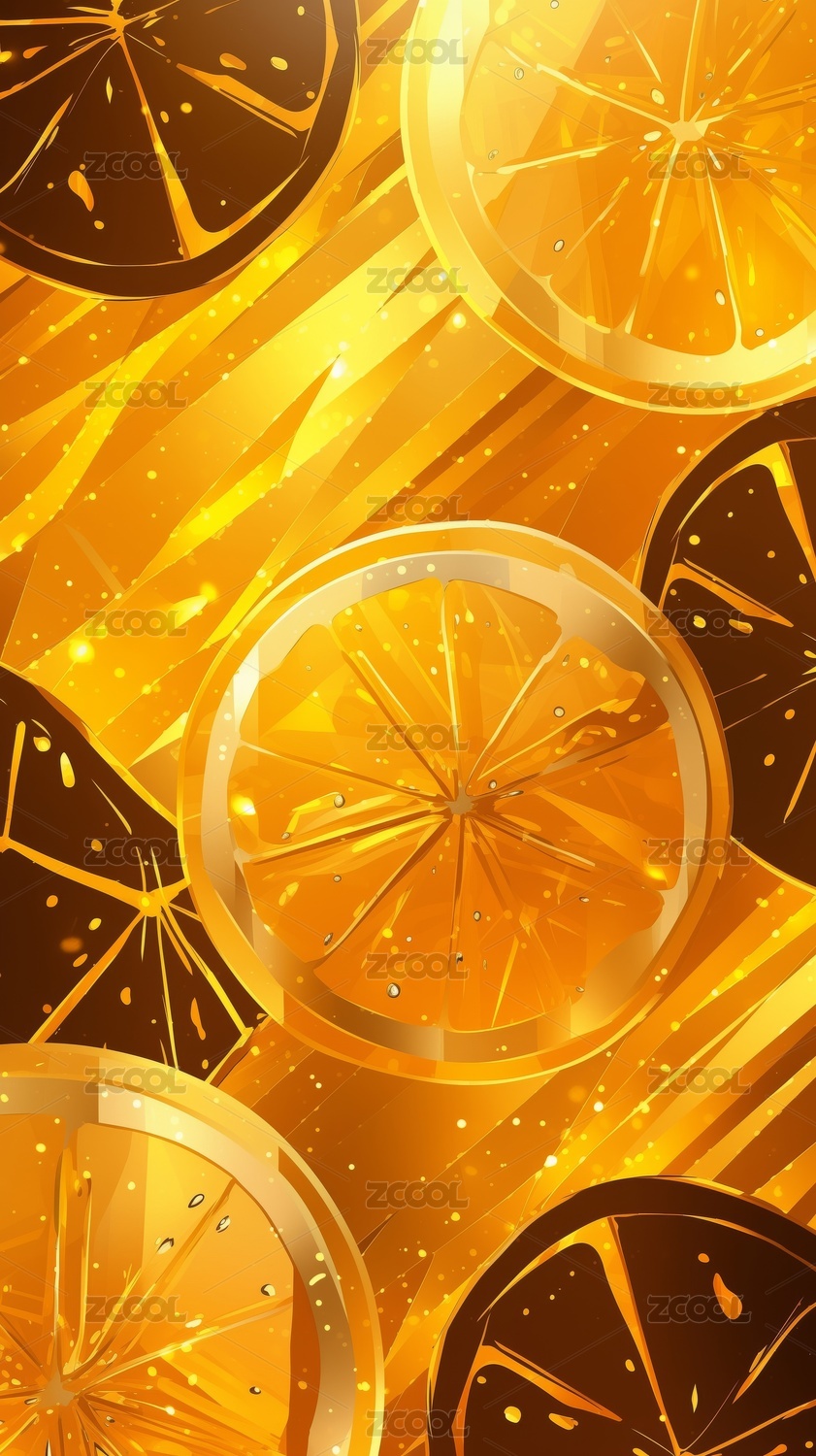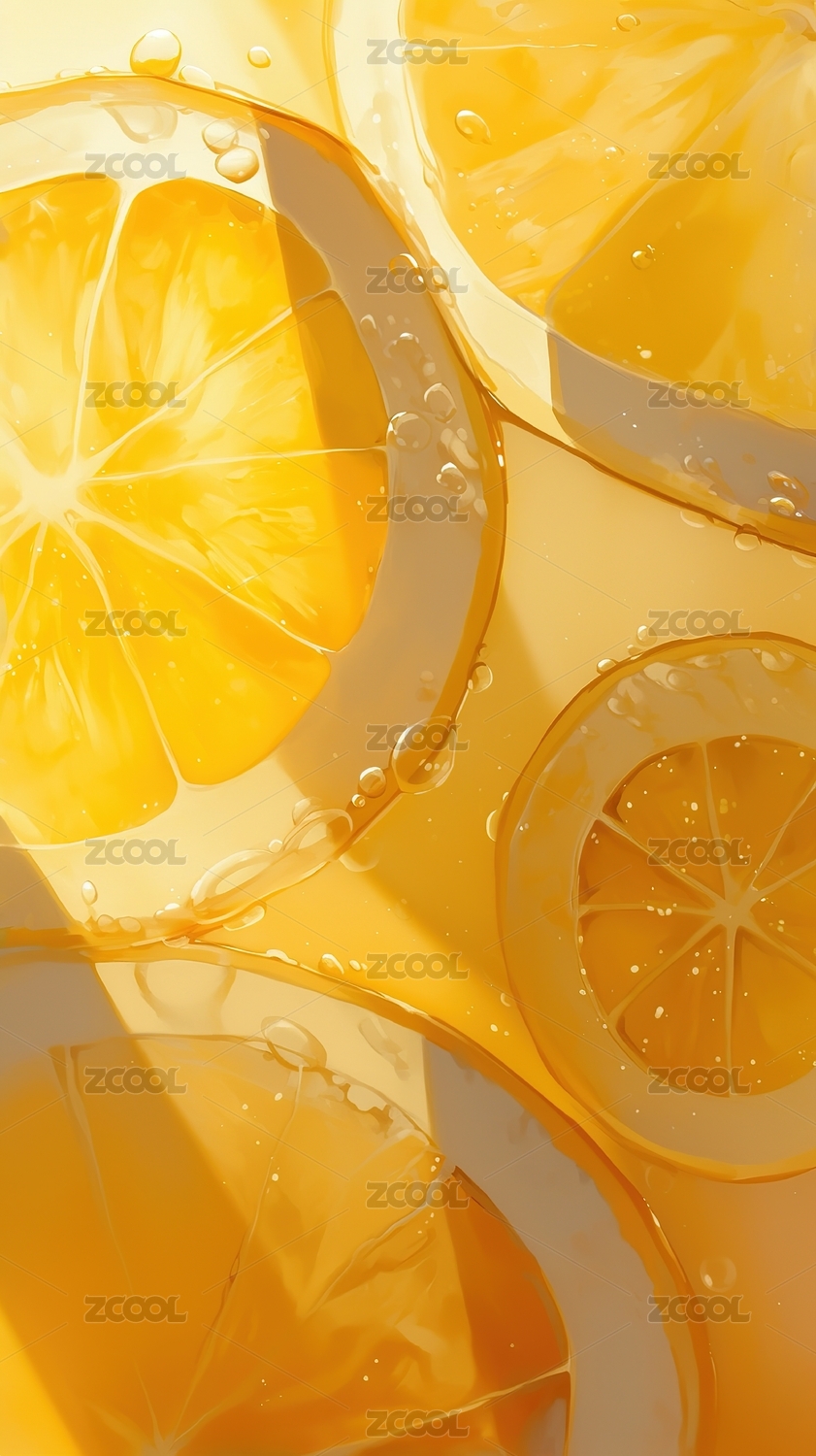 彩色桌面柠檬片全息金属金箔3D荧光色插画