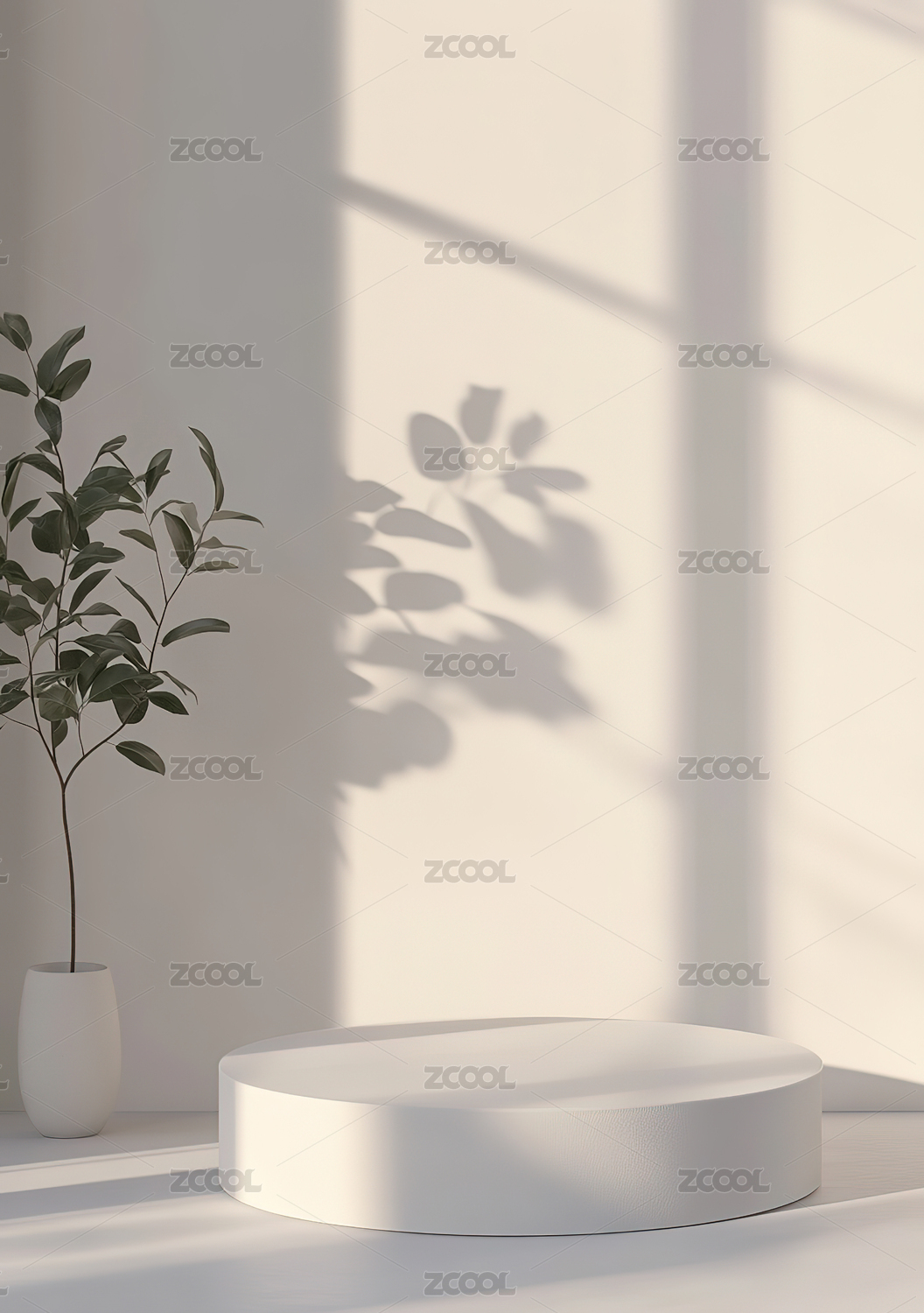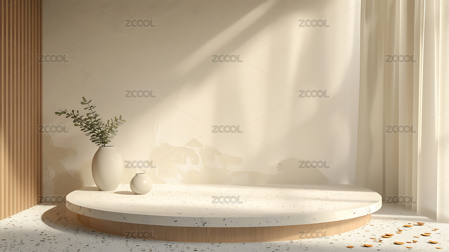 米色背景上的圆形展示台