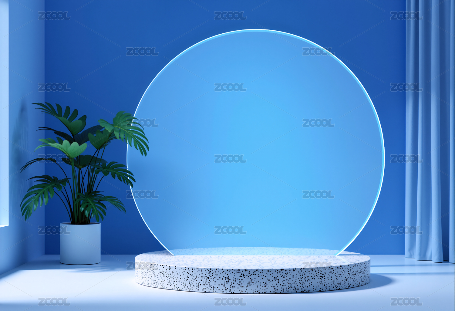 蓝色空间中的圆形展台