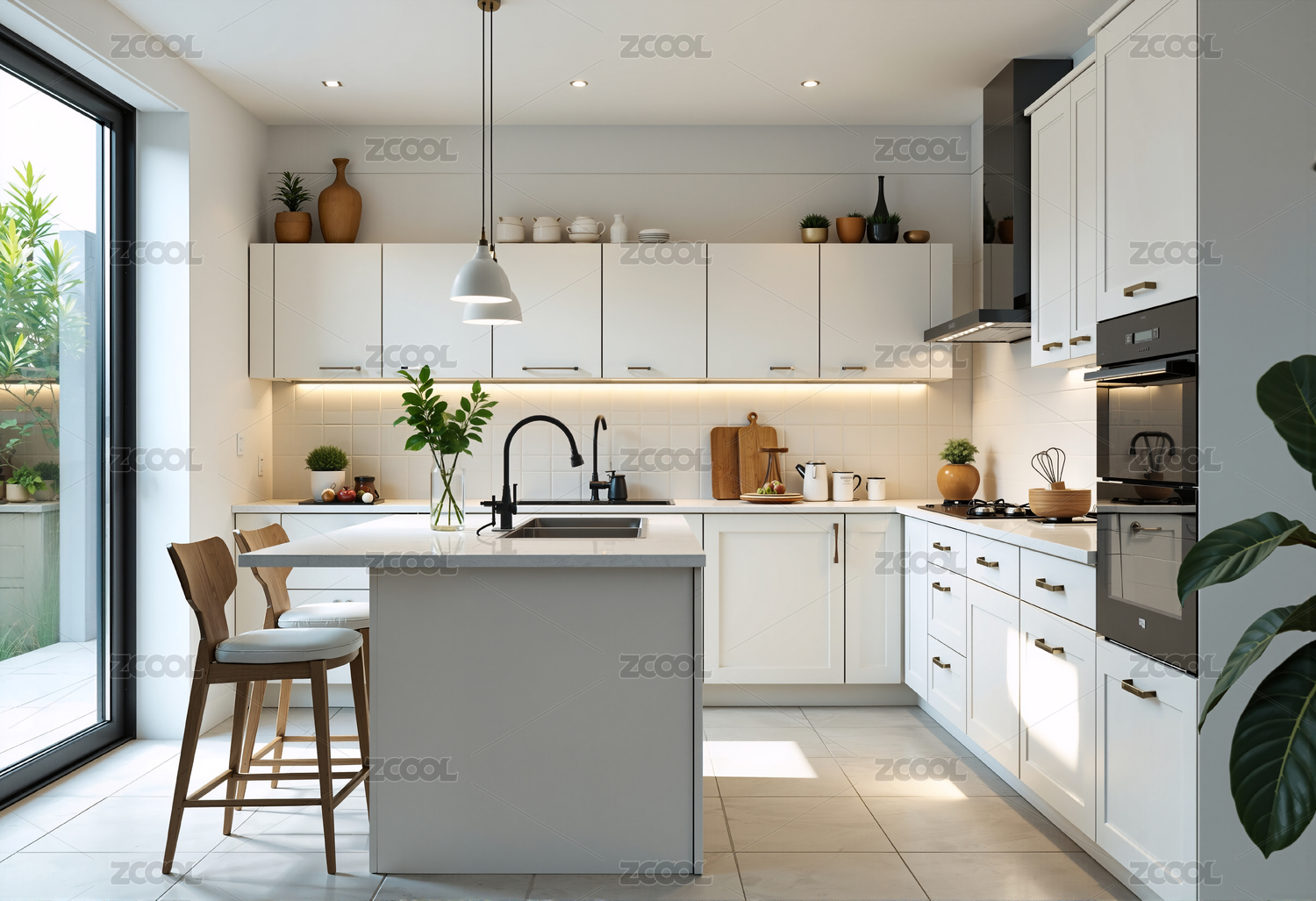 厨房,轻奢,奶油色,橱柜,岛台,灯光,家居,装修,家装,极简