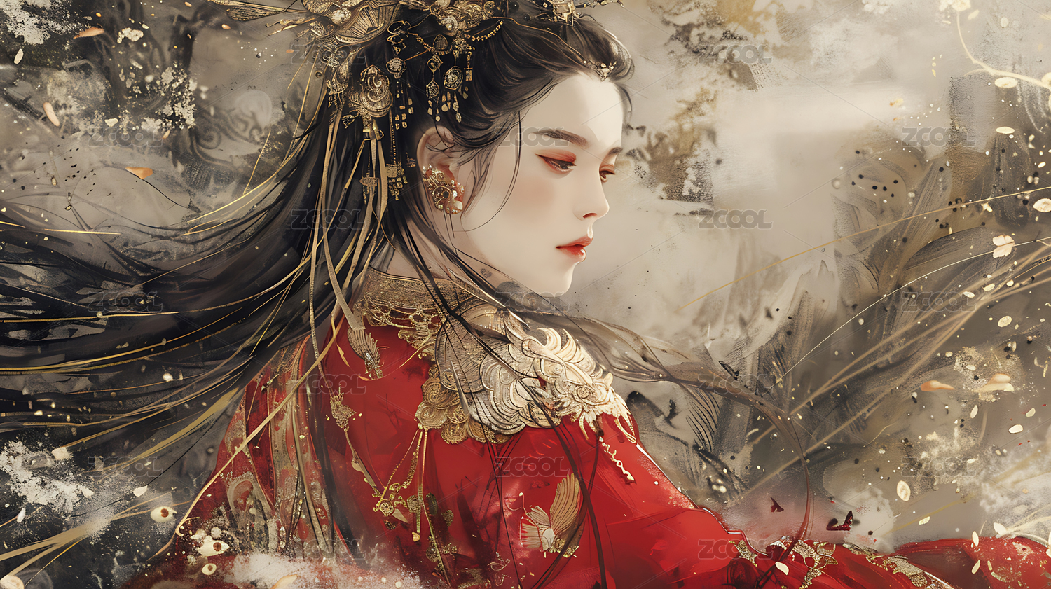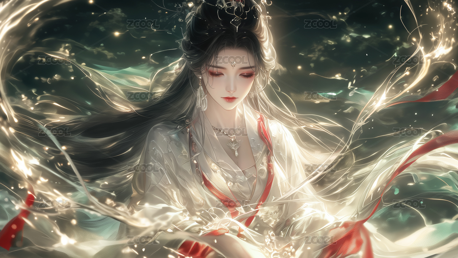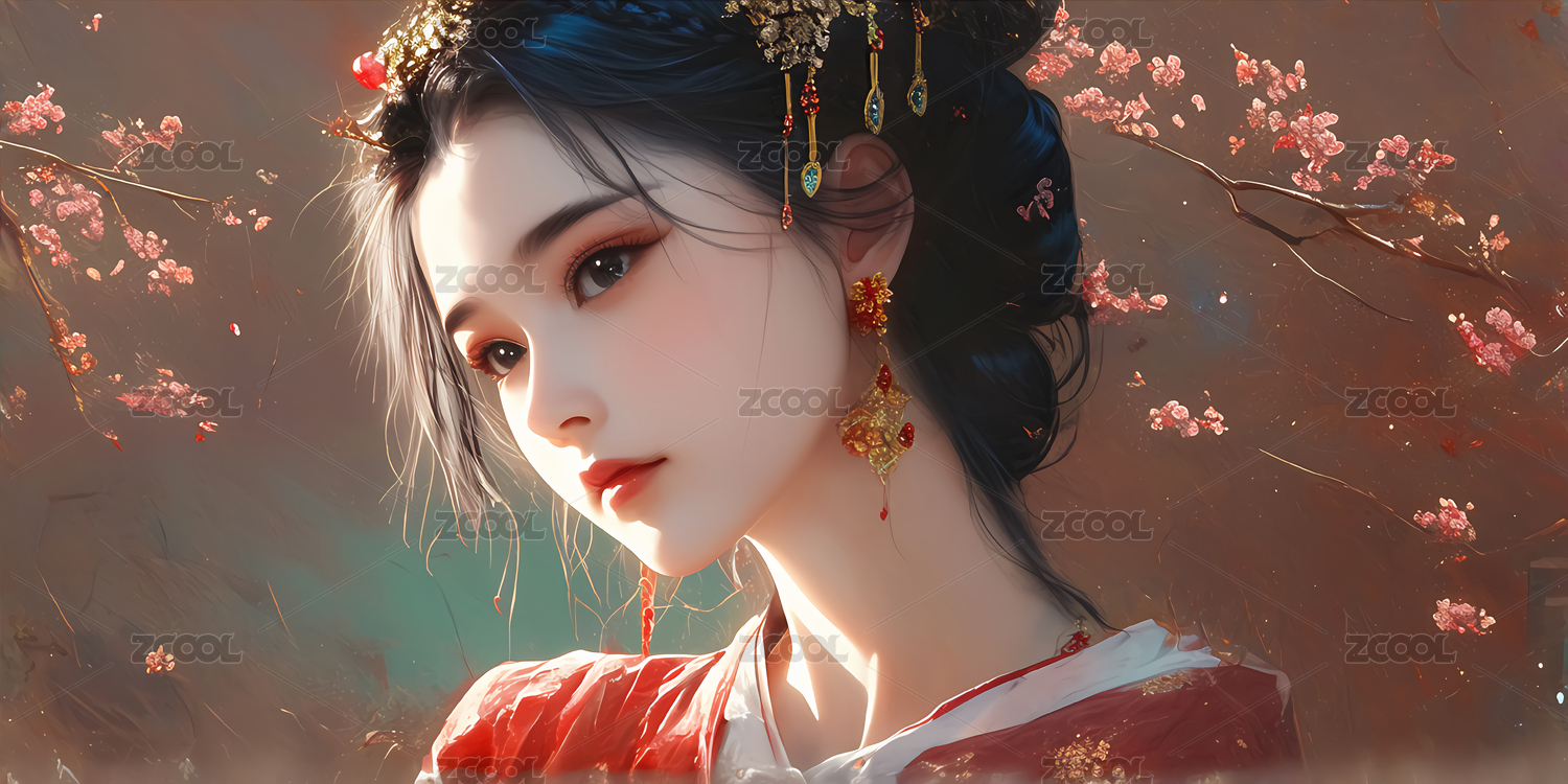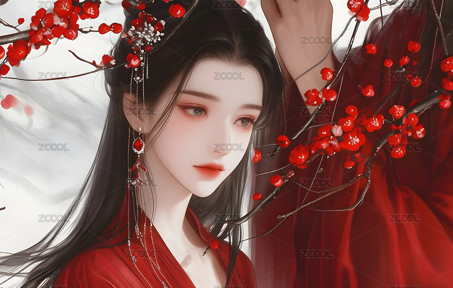 灯笼,女子,夜景,传统,节日,红色,灯光,古风,服饰,美丽