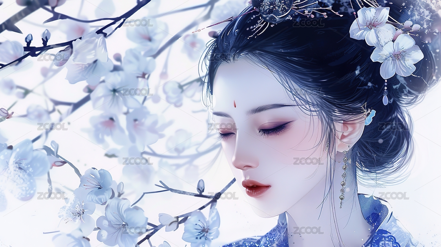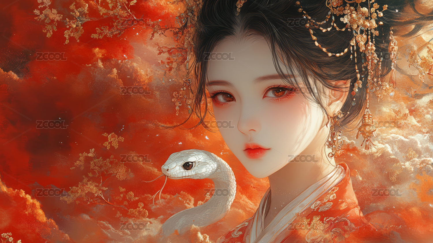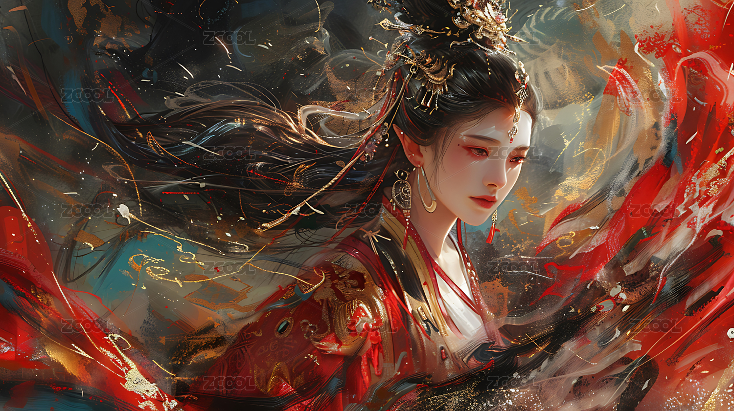 灯笼,女子,夜景,传统,节日,红色,灯光,古风,服饰,美丽
