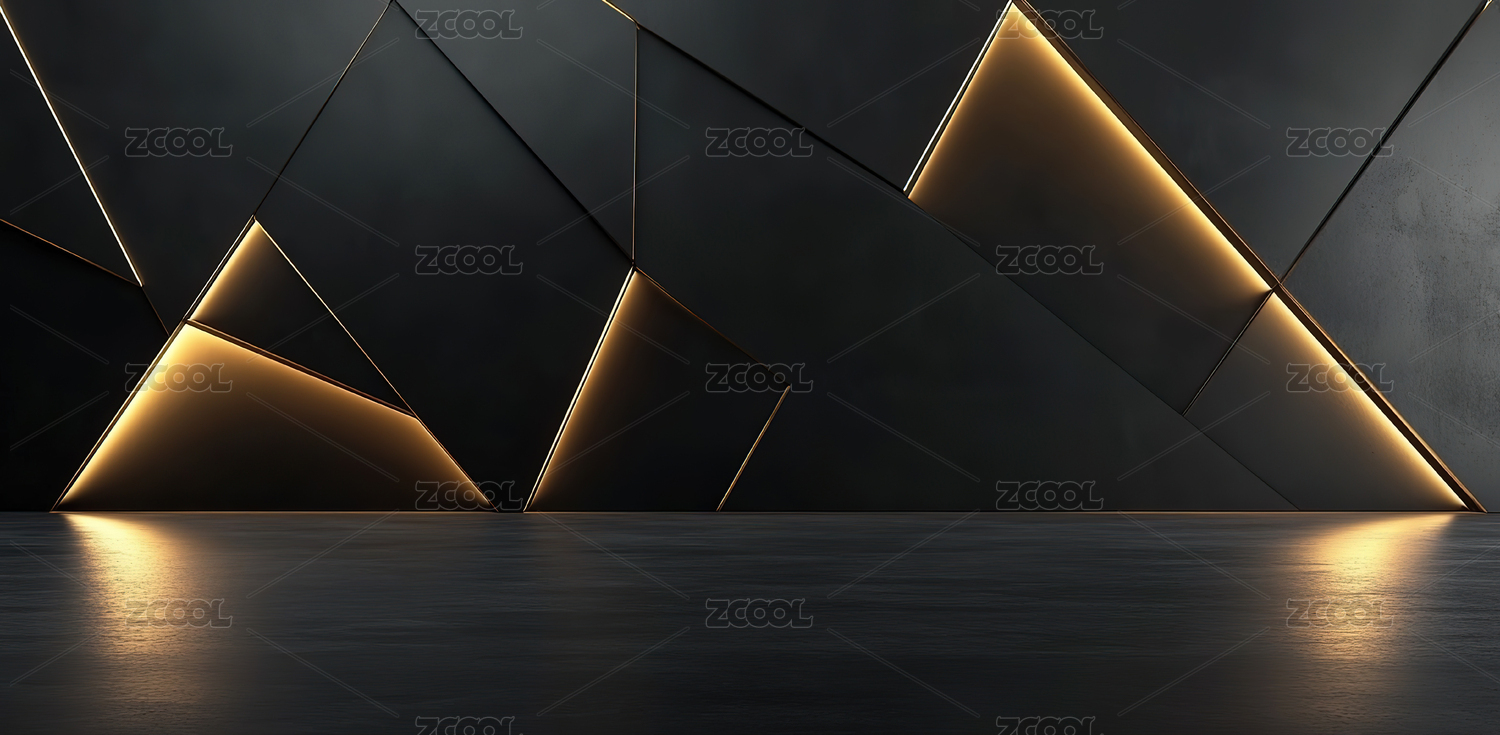 几何,抽象,黑色,金色,立体,反射,光影,对称,线条,角度