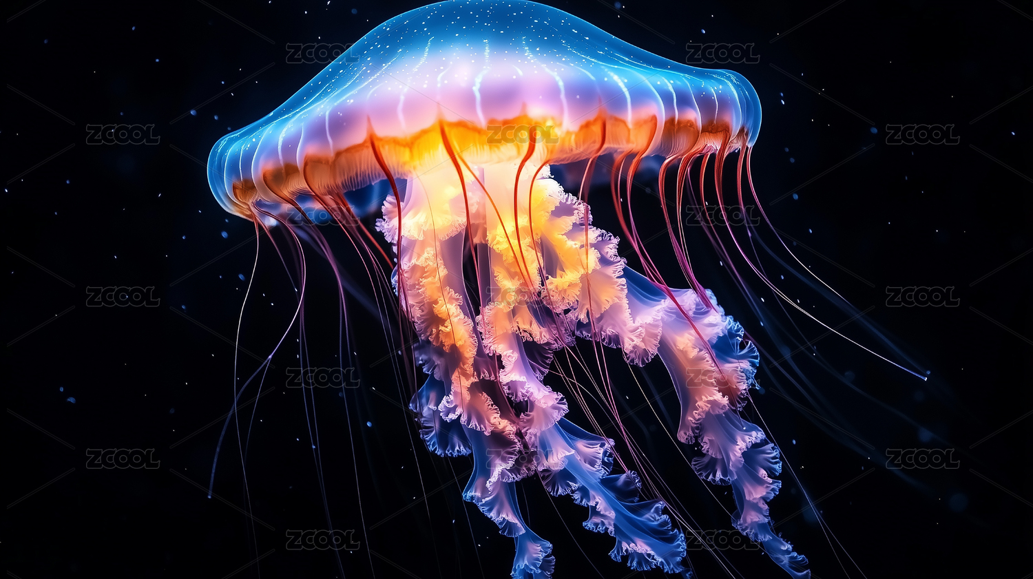 3D,海底,生物,黑底,水母,图案,设计,艺术,发光,水里
