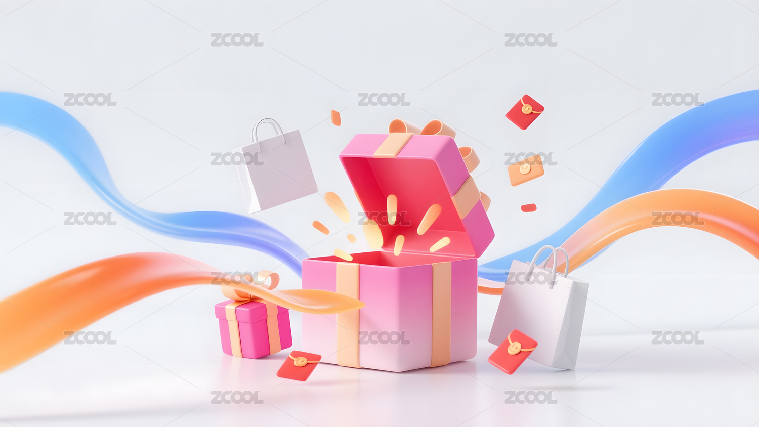 创意购物袋与礼盒 3D渲染