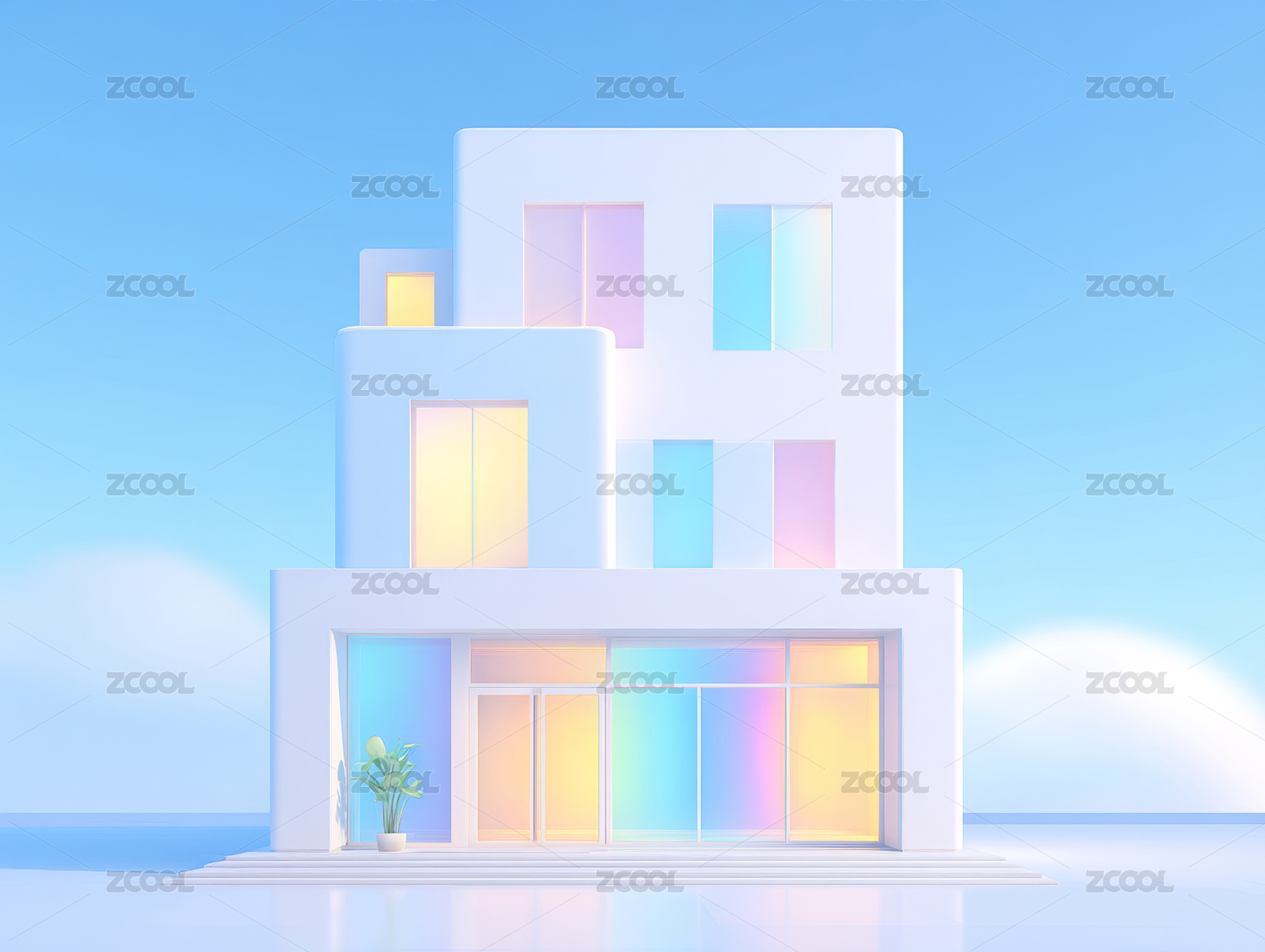现代建筑, 玻璃窗, 气球, 树木, 蓝天, 白云, 阳光