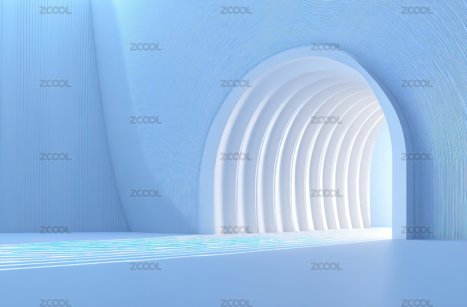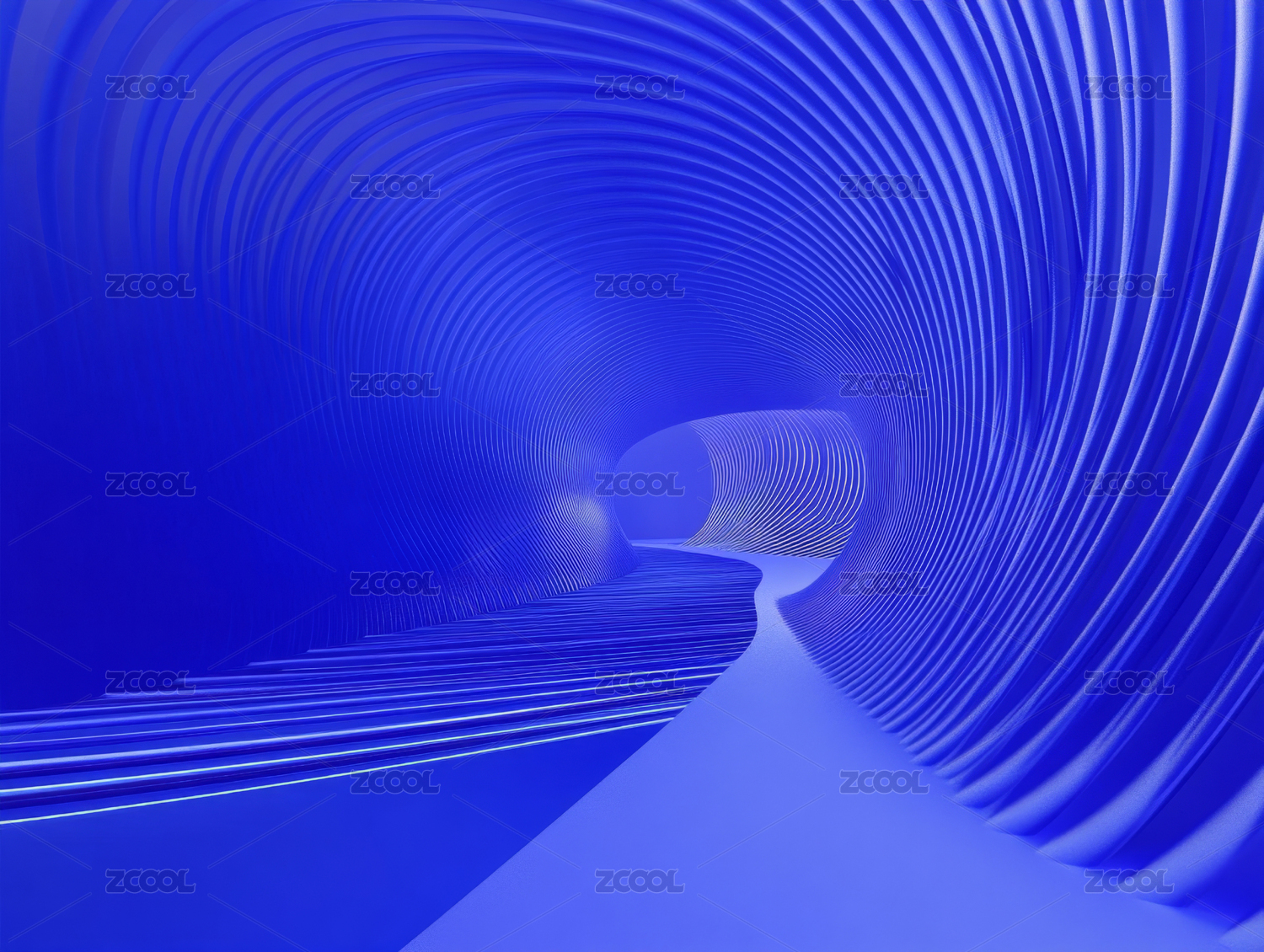 蓝色,抽象,几何,隧道,线条,现代,科技感,三维,空间,未来