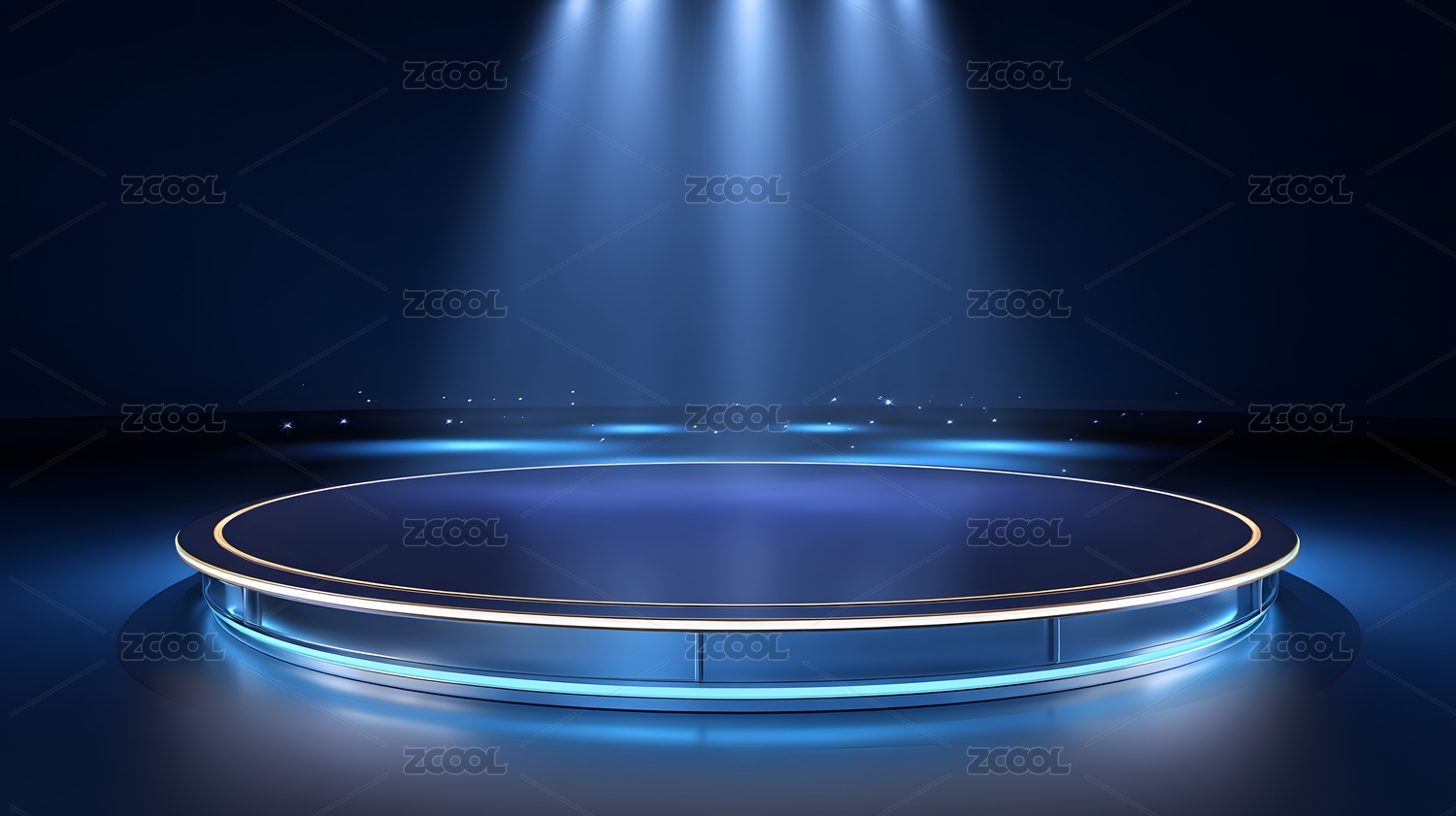 未来,科技,展示,平台,蓝色,灯光,圆形,舞台,金属,质感