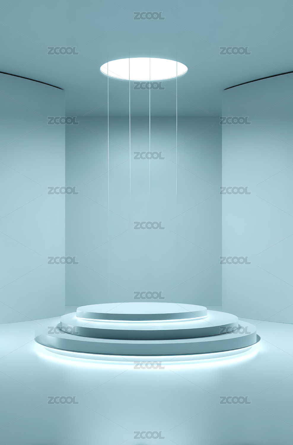 未来感,科技,展示台,圆形,蓝色,灯光,室内,现代,设计,简洁